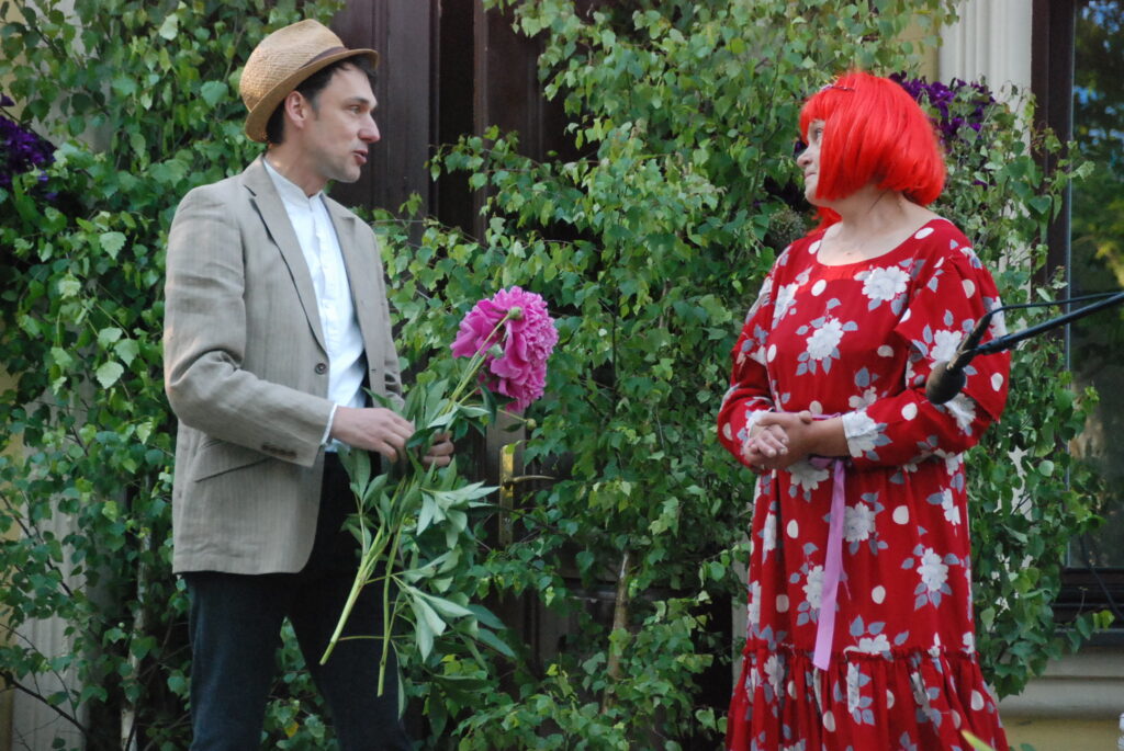 Skurbuļu Skaidras lomā bija Maija Cinovska, bet Mirdziņas lomā bija iejutusies Gita Tumpele. Alfons izrādē bija Andris Vasiļevskis, bet Helmuts – Harijs Genese.