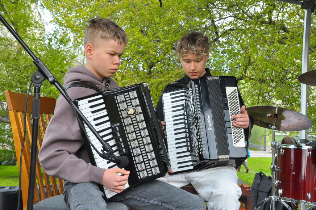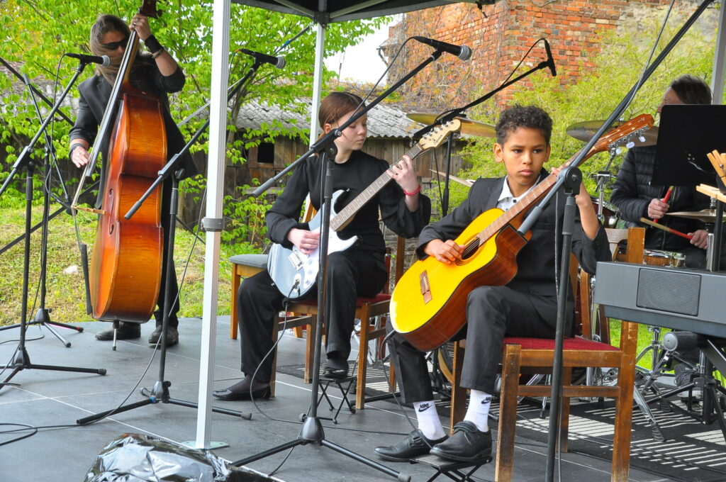 Uz svētku skatuves pirmie uzstājās Aizputes mūzikas skolas audzēkņi.