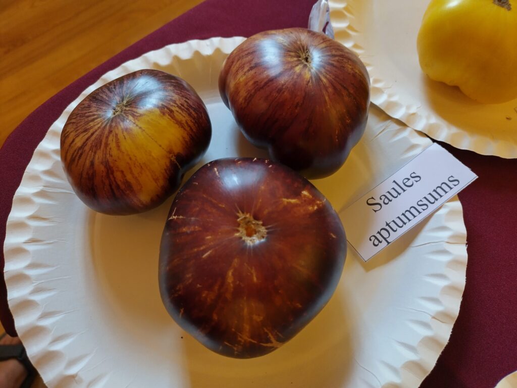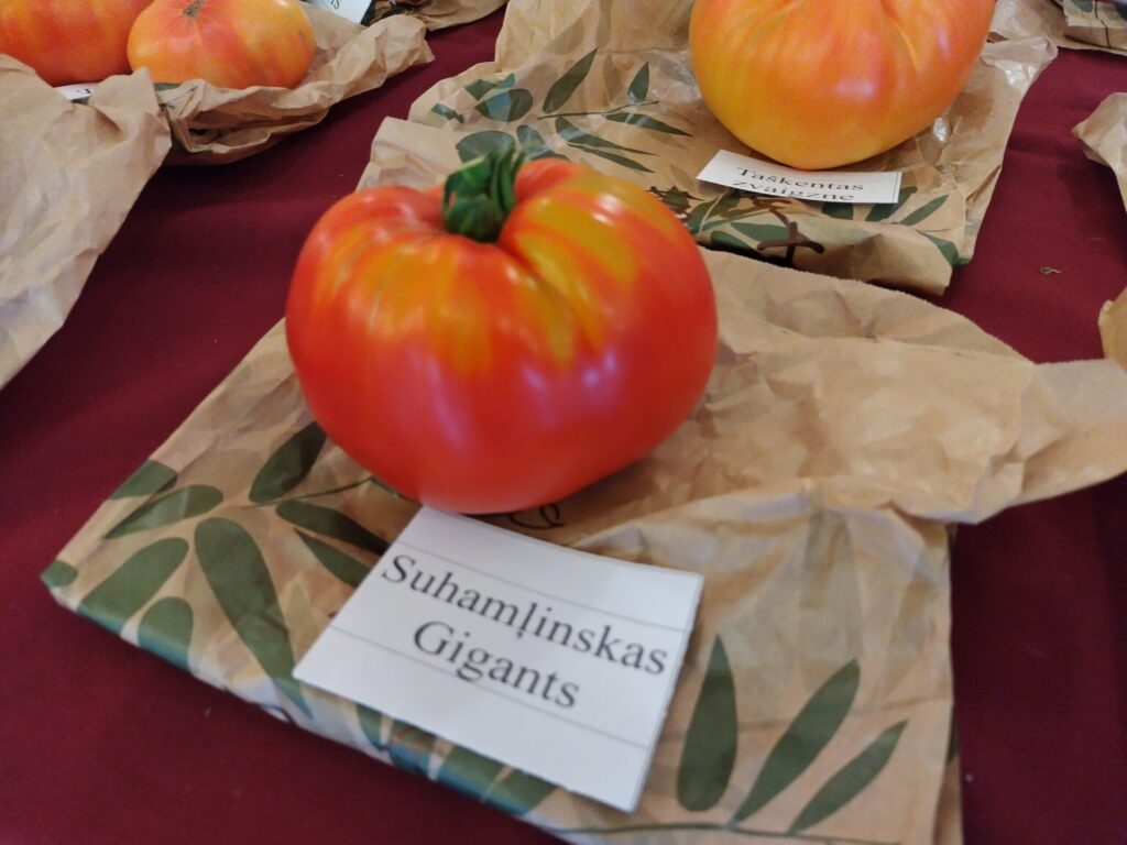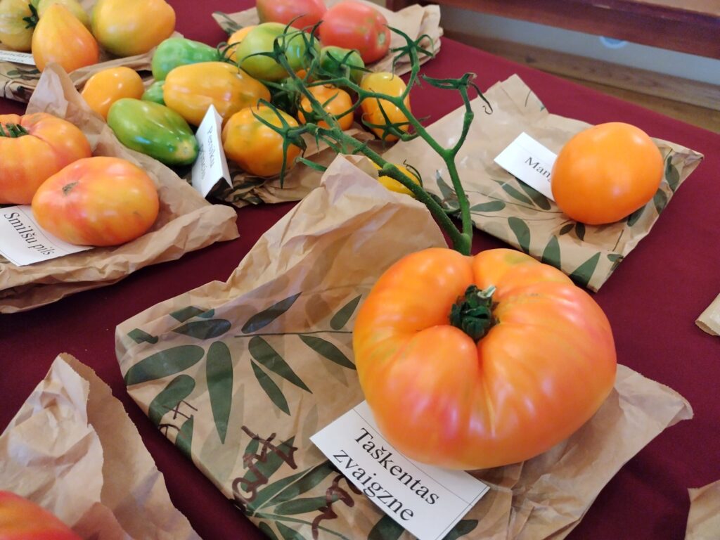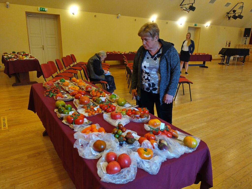 V. Salmgrieze-Geste Cīravas kultūras namā apskatei izlikusi vairāk nekā 160 tomātu šķirnes, aptuveni 80 paprikas šķirnes un pāri par 20 piparu šķirnēm. Kopumā viņai saimnbiecībā ir vairāk nekā 200 tomātu šķirnes. Daudzas jau ir paspējušas noražot, izstādē iekļuvušas tās, kas šobrīd labi saglabājušās.