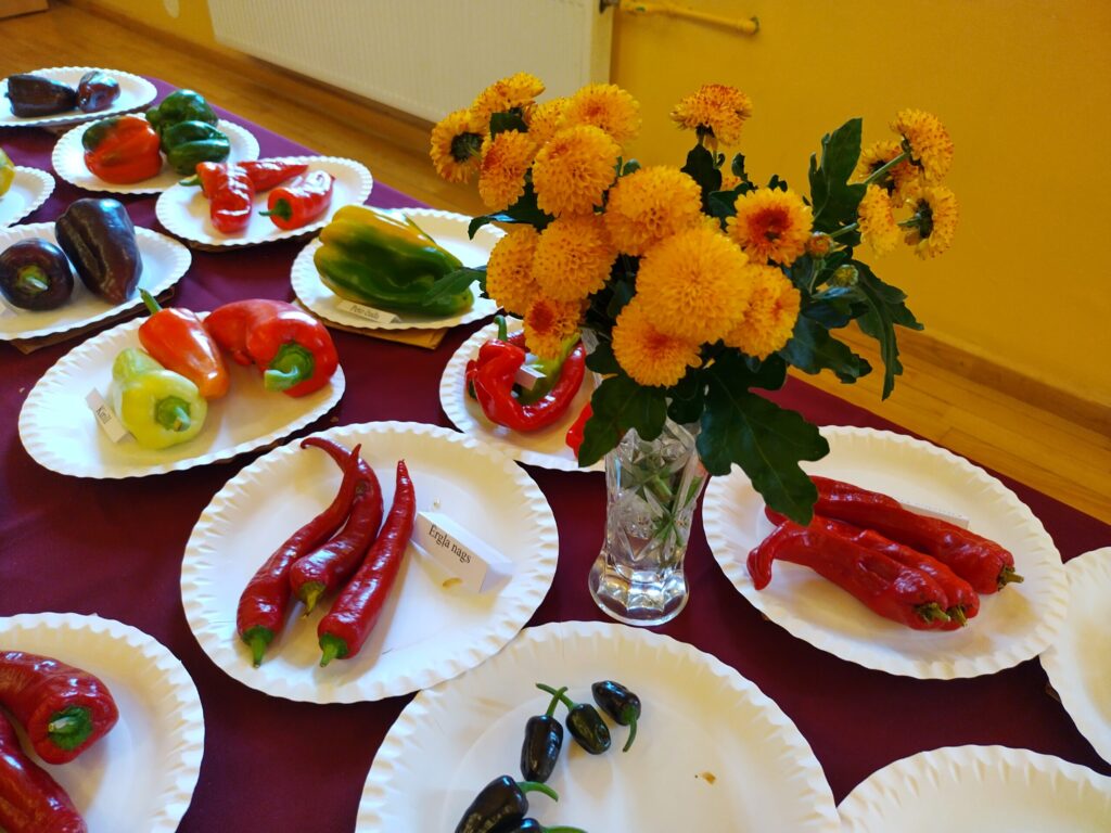 Šoreiz izstādē īpaši jāredz pipari, kurus V. Salmgrieze-Geste podiņos izaudzējusi no mazas sēkliņas. Tās pasūtītas Beļģijā. Piparus saimniece audzē pirmo gadu un atzīst, ka vēl daudz mācās. Galvenā kļūda, ka tie jāsēj daudz agrāk, jau februārī. Aizputes pagasta iedzīvotājai pipari izauguši dienas gaismā, taupot dārgo elektrību. Tikmēr paprika tiek audzēta jau otro vai trešo gadu.