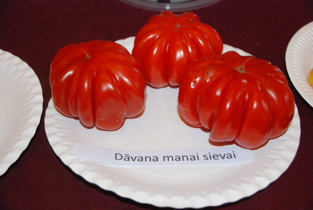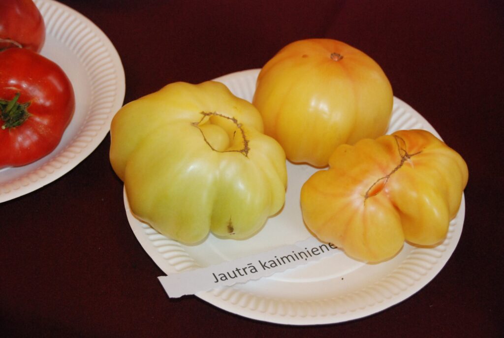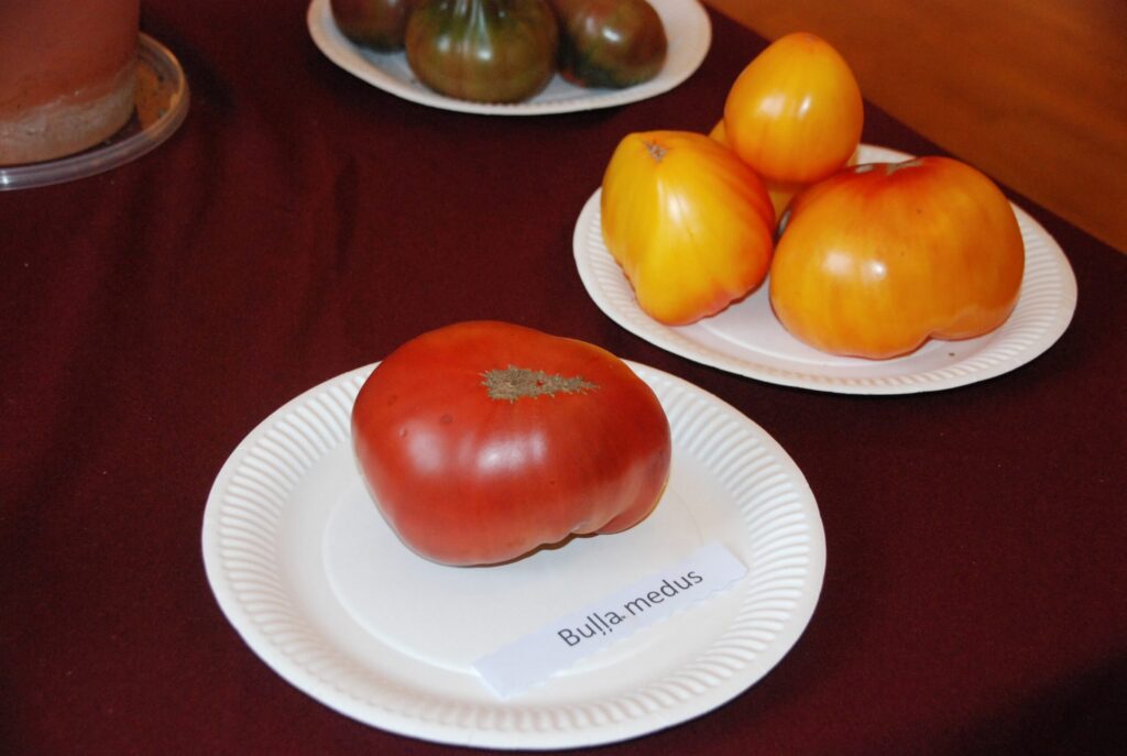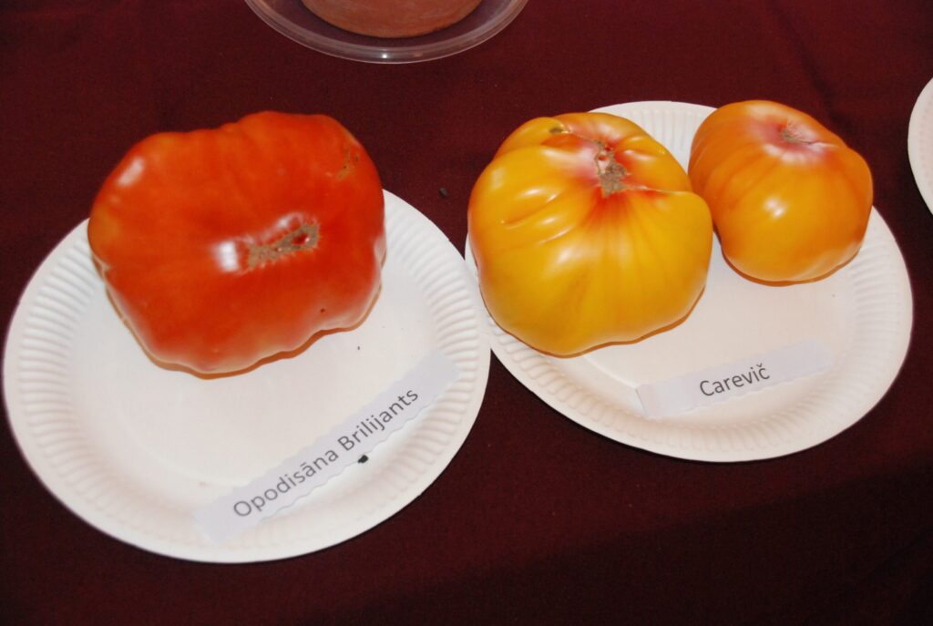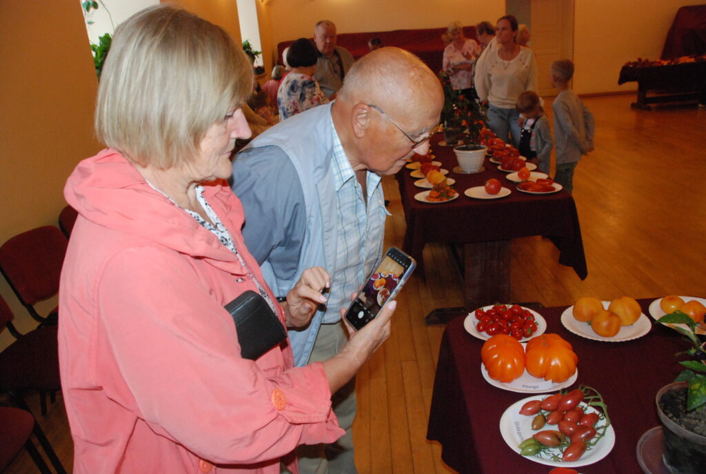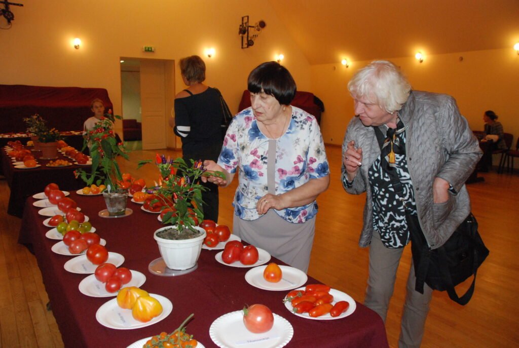 Šogad Cīravas kultūras namā izstādē apskatei V. Salmgrieze-Geste izlikusi aptuveni simts tomātu šķirnes – sarkanus, dzeltenus, tumšos toņos, iespaidīgi lielus un ar ļoti interesantiem nosaukumiem. Tomātu audzētāja portālam stāsta, ka izstādē skatāma aptuveni puse no visām viņas šķirnēm, jo viena daļa ir jau noražojusi.