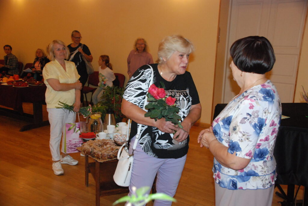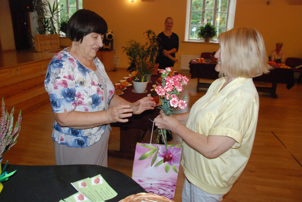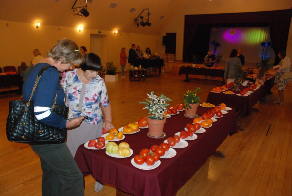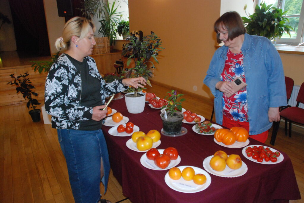 Aizputes pagasta saimniecības “Turaidas” saimniece Valda Salmgrieze-Geste (pa kreisi) otrdien Cīravas kultūras namā priecājās par ikvienu apmeklētāju, daloties savā pieredzē par tomātu audzēšanu. Foto – Uldis Dobelis