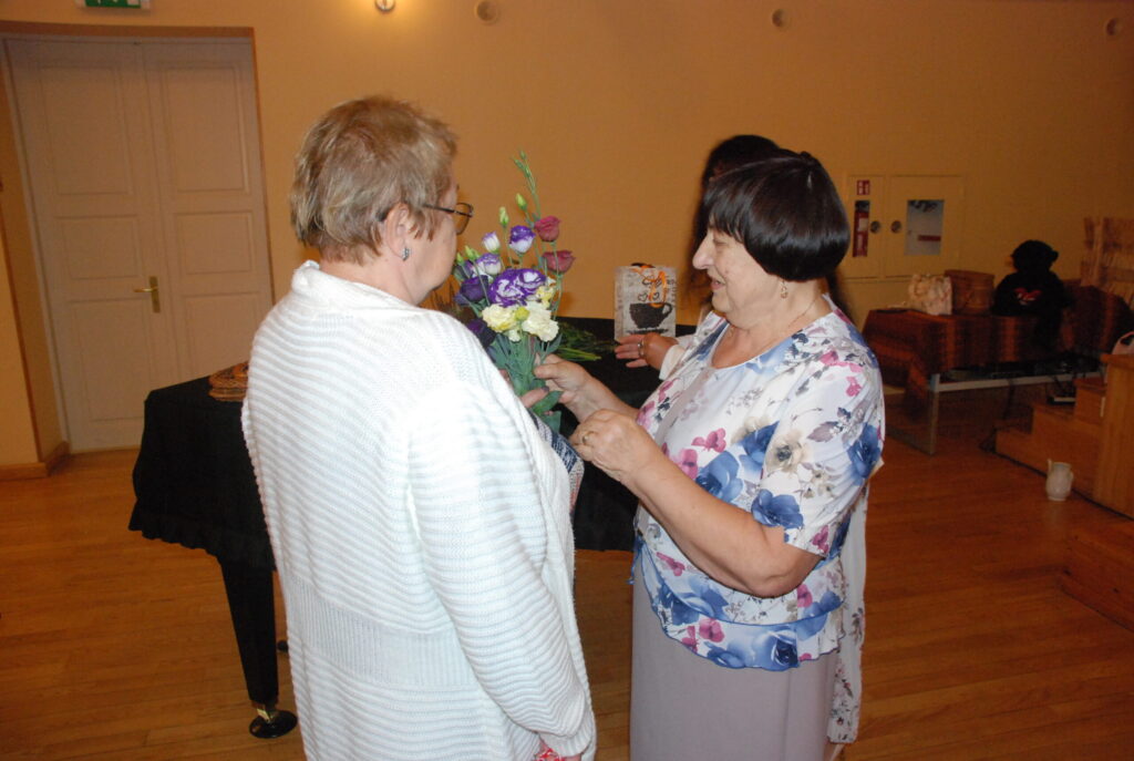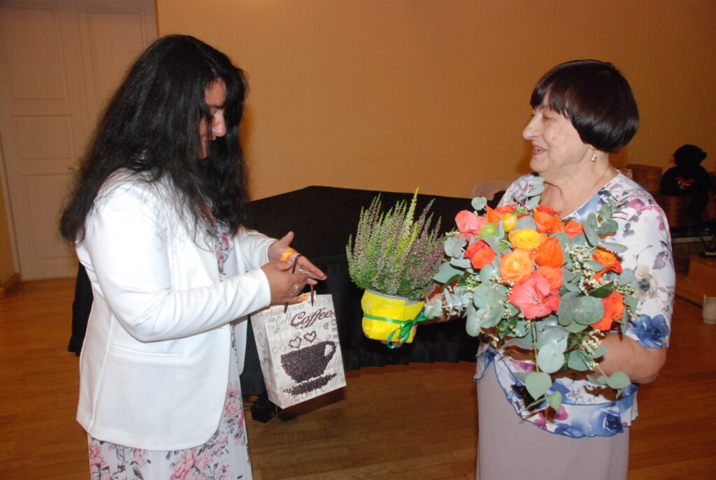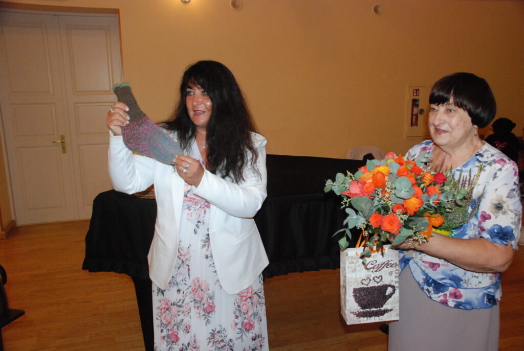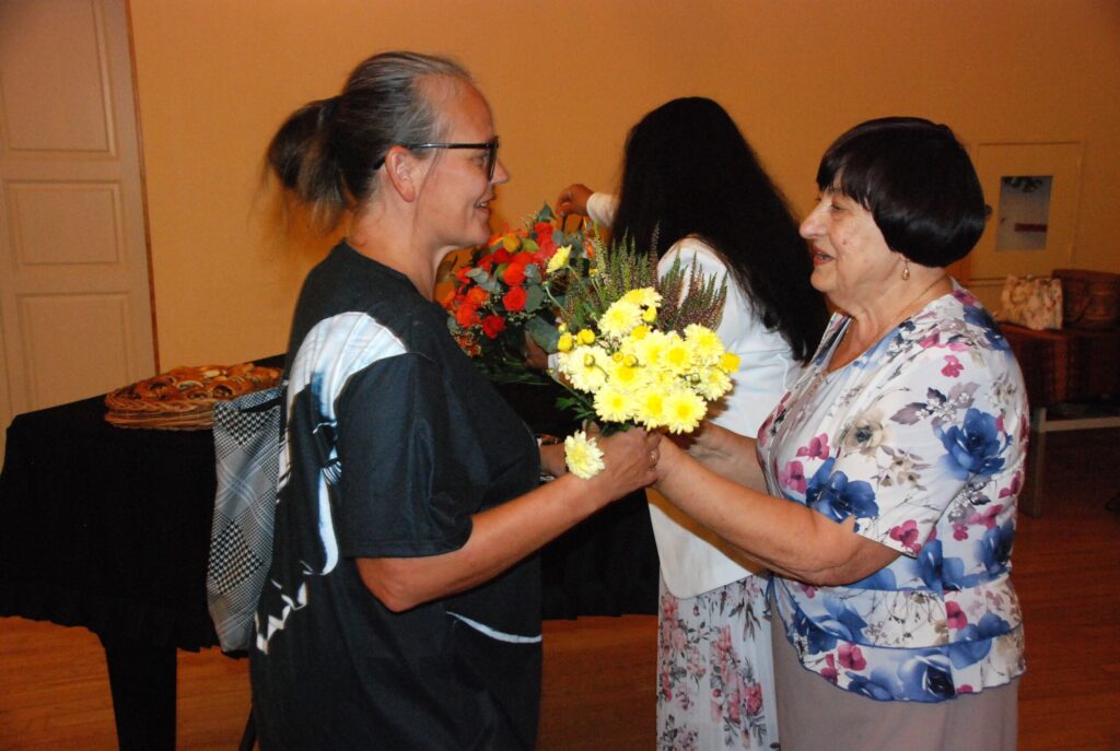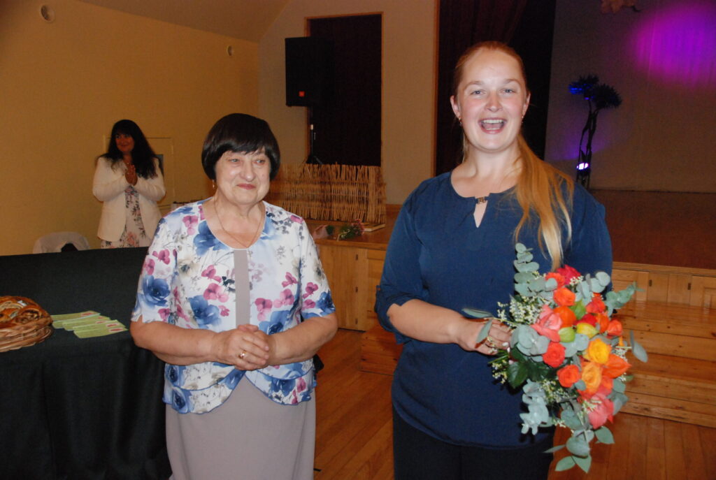 Aizputes pagasta saimniecības “Turaidas” saimniece Valda Salmgrieze-Geste (pa kreisi) otrdien Cīravas kultūras namā priecājās par ikvienu apmeklētāju, daloties savā pieredzē par tomātu audzēšanu. Foto – Uldis Dobelis