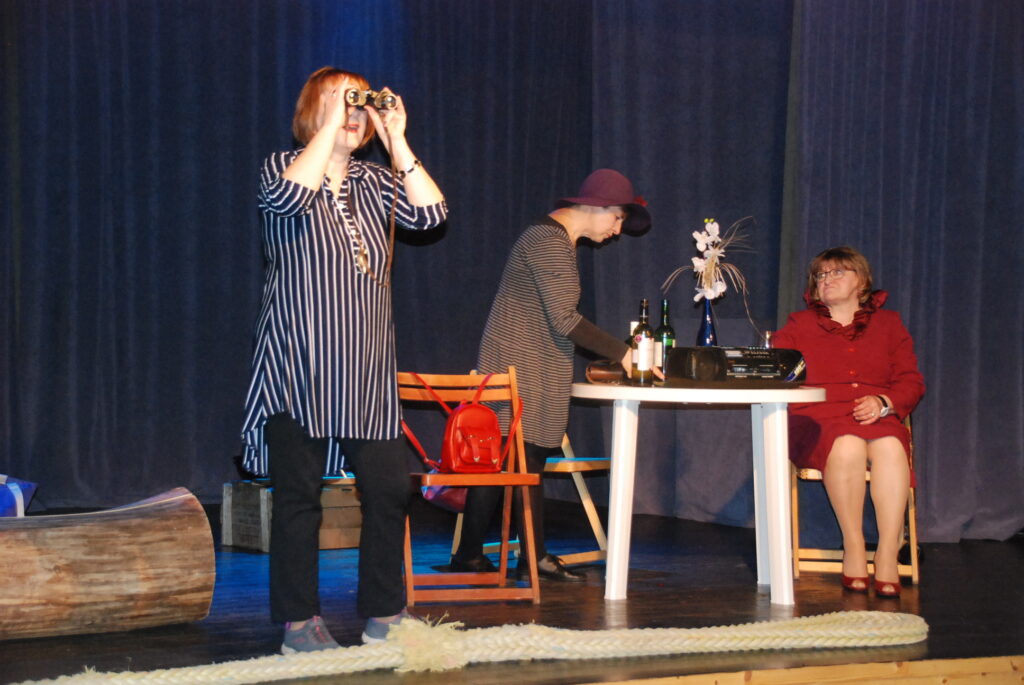 Aizputes Tautas teātris jau divas reizes paspējis nospēlēt jauno izrādi – A. Niedzviedža “Jūras gaisu”, gan Aizputes kultūras namā, gan Apriķos. 7. aprīlī izrāde tiks spēlēta Laidos.