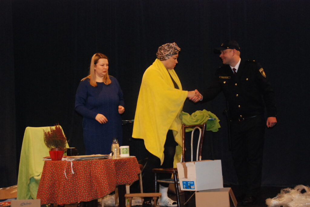 Vergales amatierteātris gan pērn piedalījās Dienvidkurzemes novada skatē, spēlējot izrādi “Vaļsirdīgās risks pirms brokastīm”.