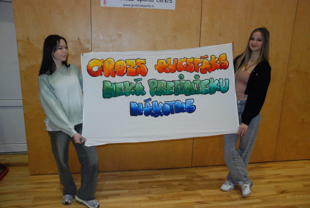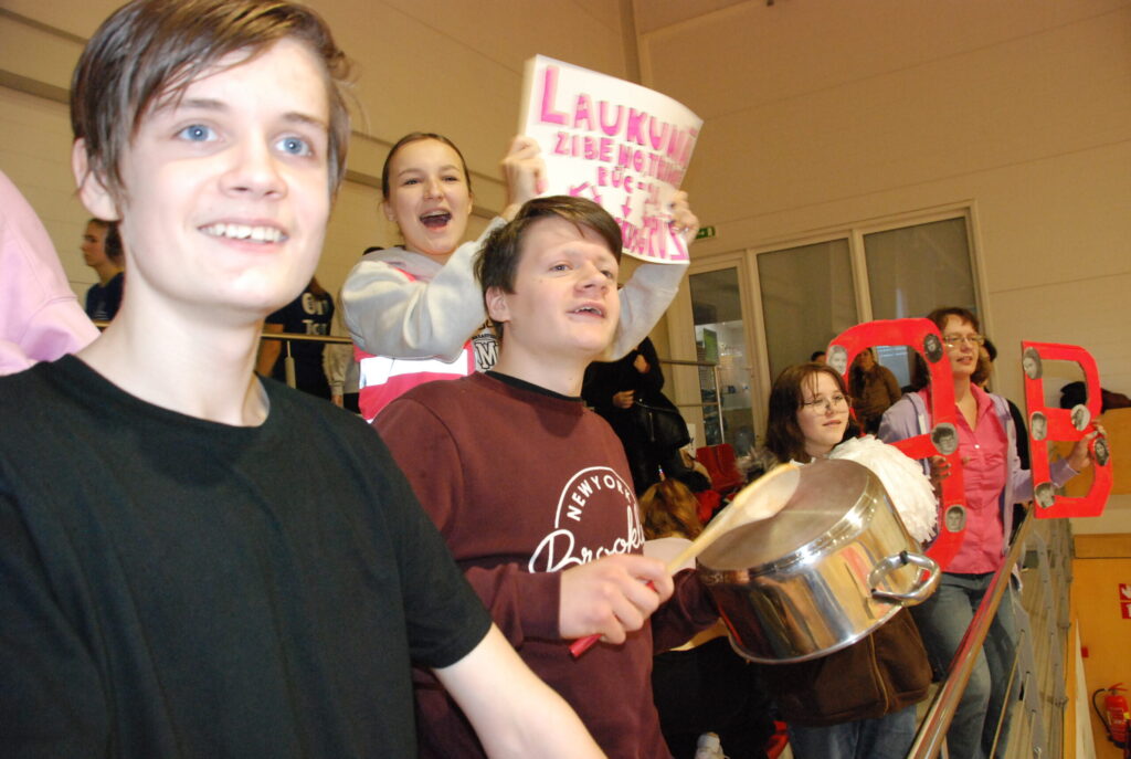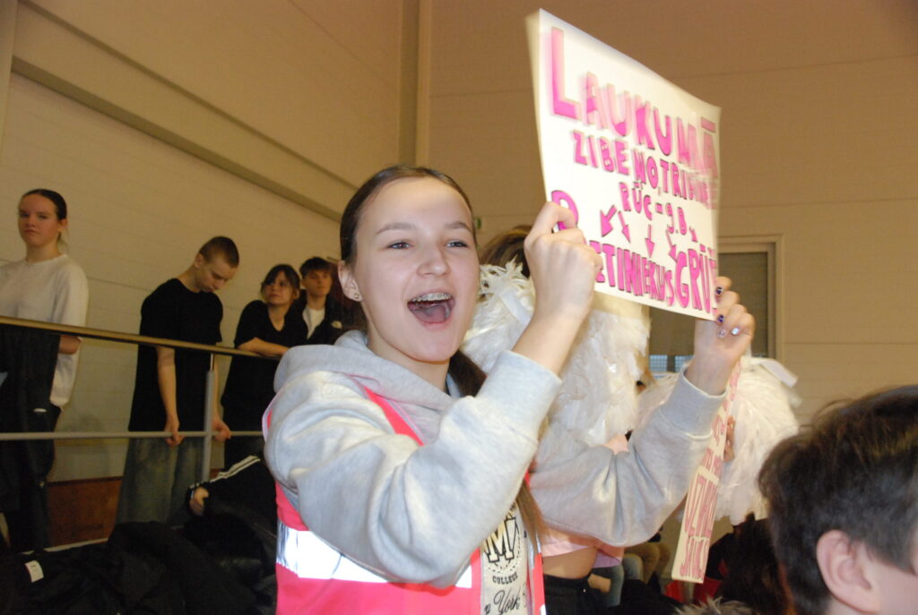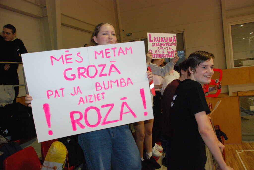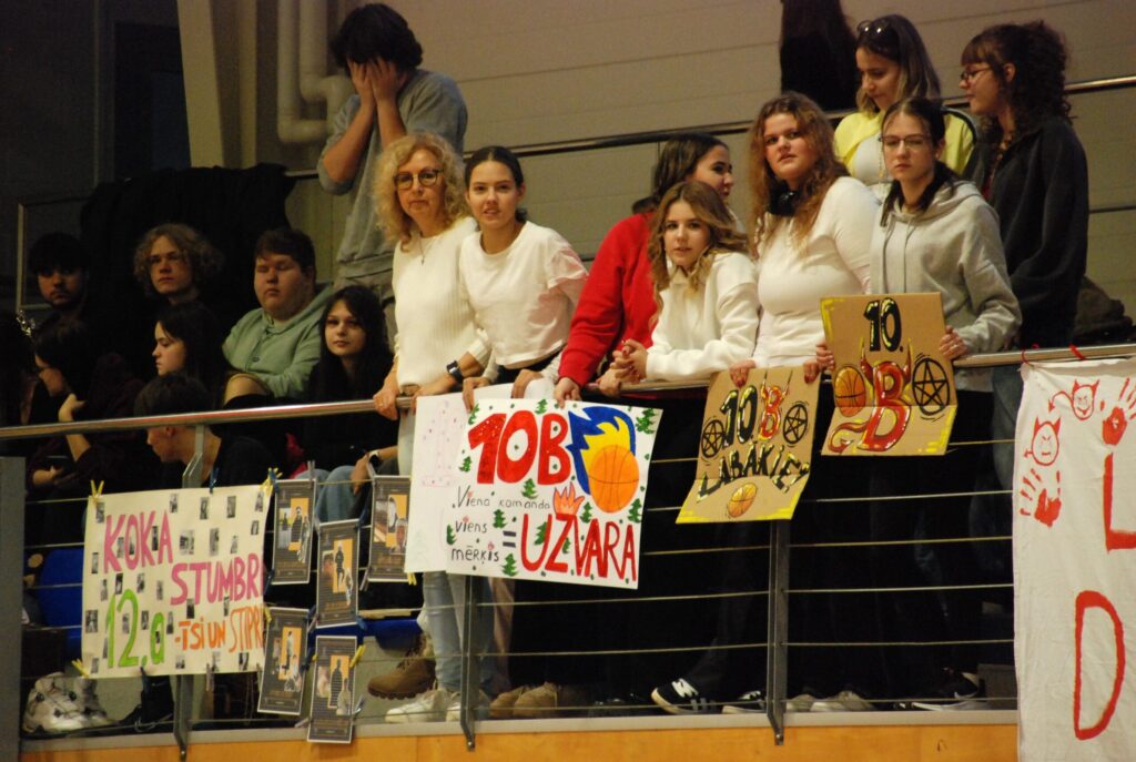Vairāk nekā desmit 9. līdz 12. klašu skolēnu un skolotāju komandas devās laukumā, bet katrai vienībai skaļš atbalsts bija tribīnēs.