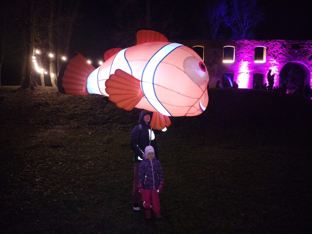 Piektdienas, 30. decembra, vakarā Grobiņas pilsdrupu apkārtnē varēja doties brīnumainā gaismas pastaigā “Gadu mijas burvība”.