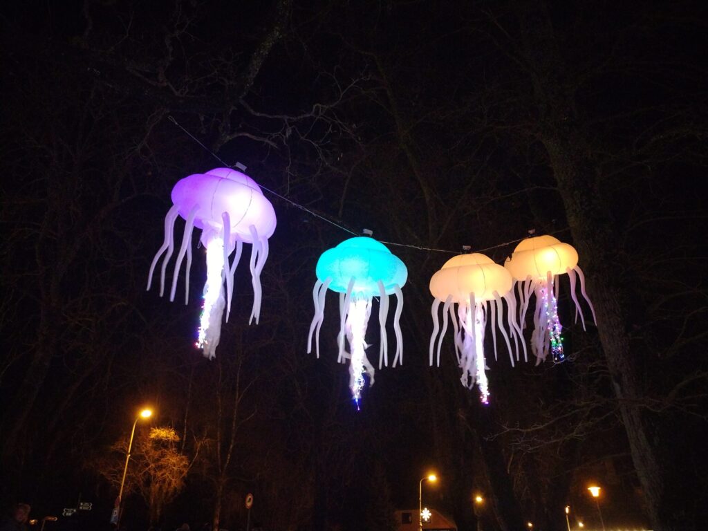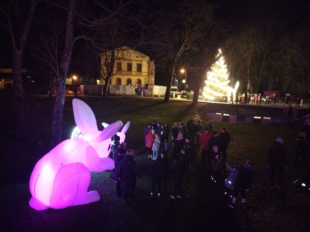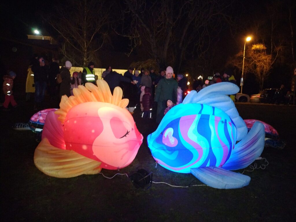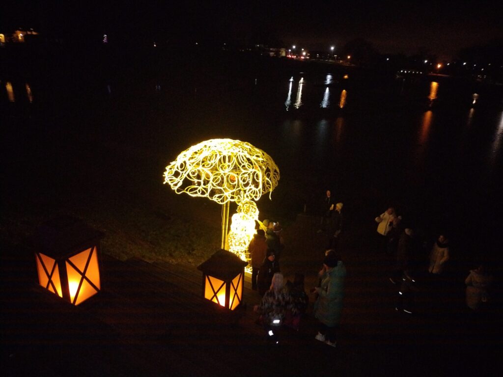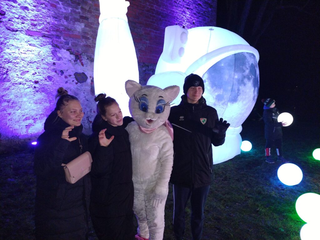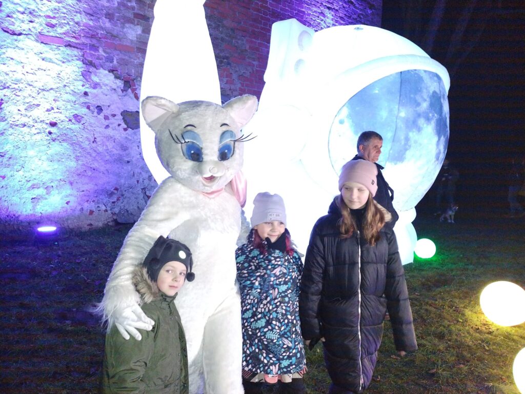 Liela interese bija par balerīnu stikla bumbā. Bērni steidza sastapt piparkūku vīriņu un citus tēlus. Iespaidīgs bija arī astronauts, lidojošas zivis, milzīgs mēness un citi tēli.