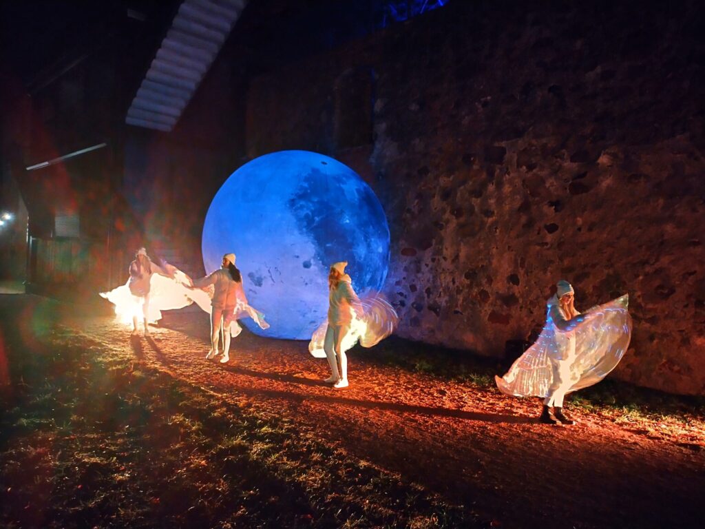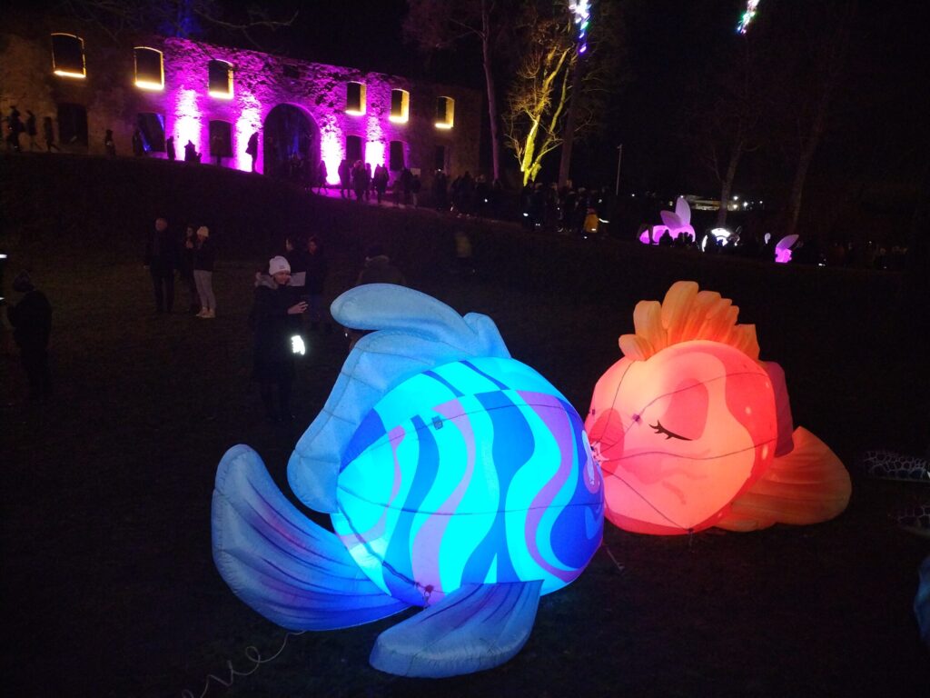 Pilsdrupās un to teritorijā bija iespējams aplūkot lielformāta gaismas instalācijas, kā arī dažādas deju performances.