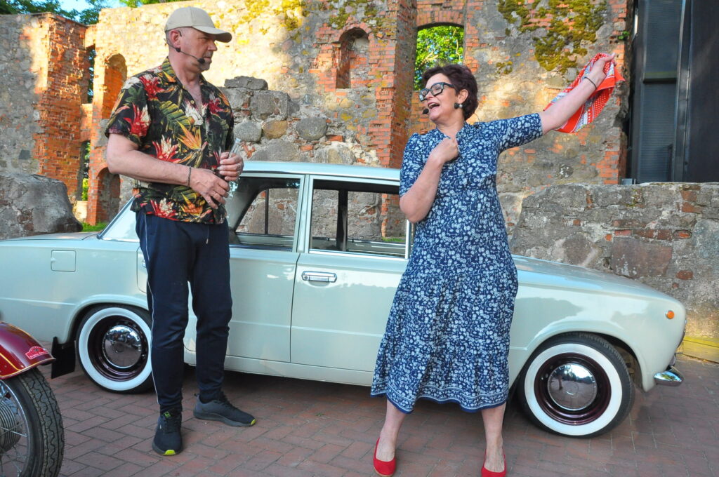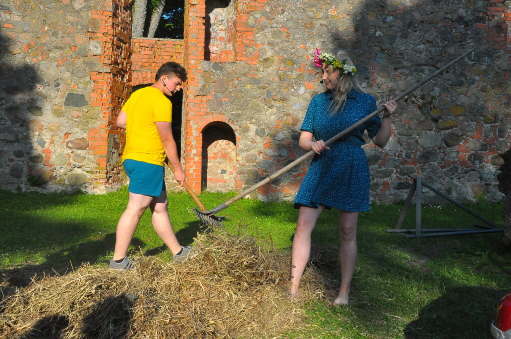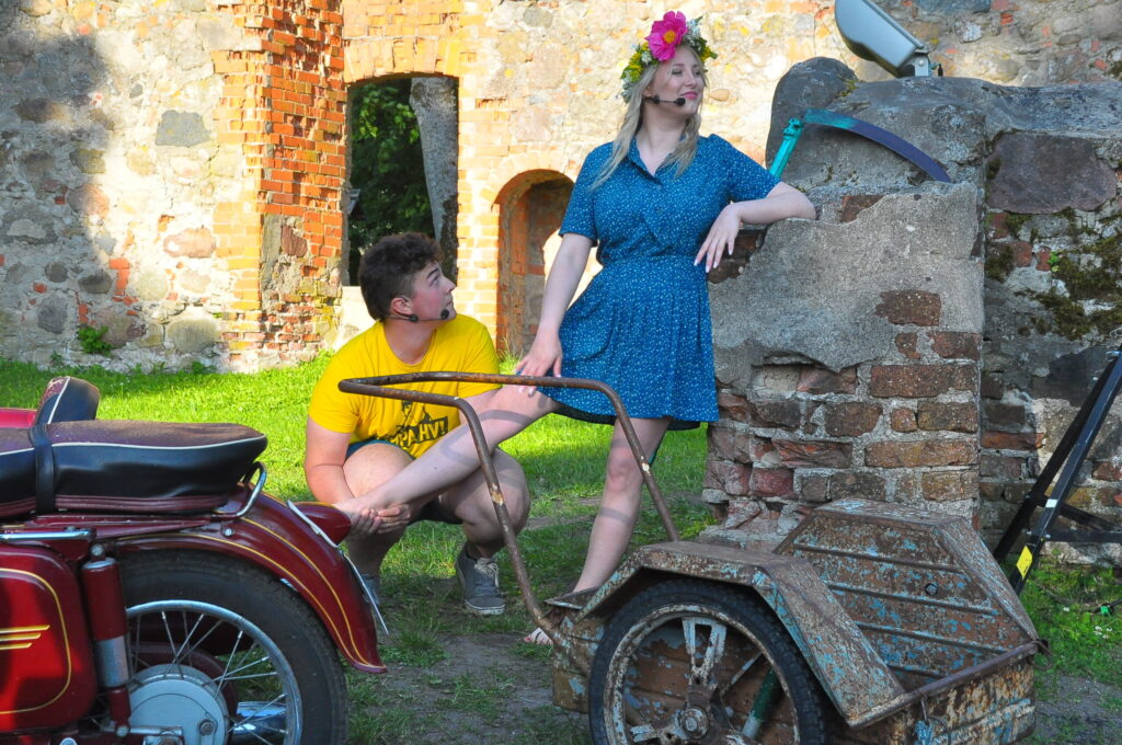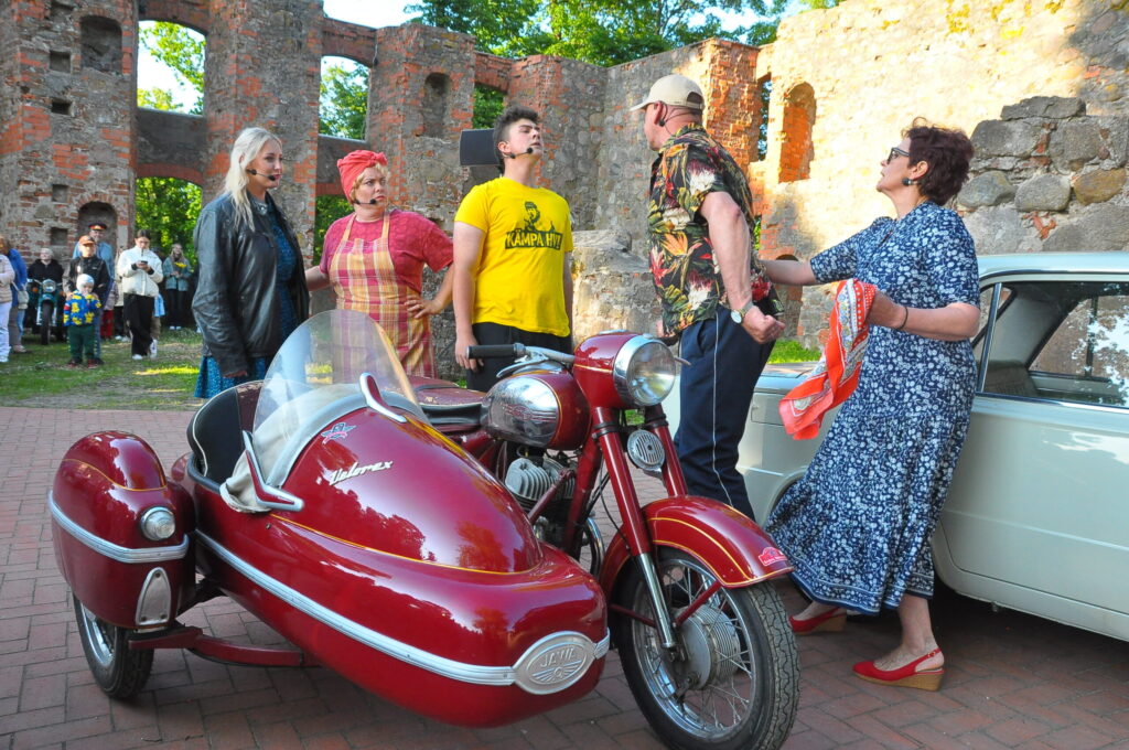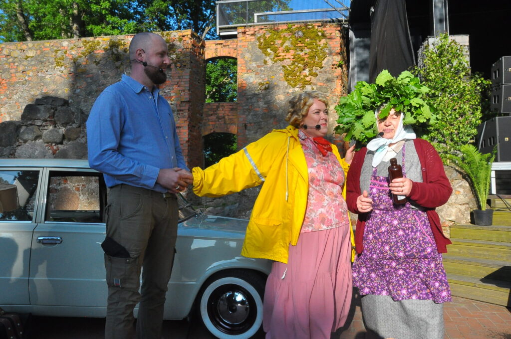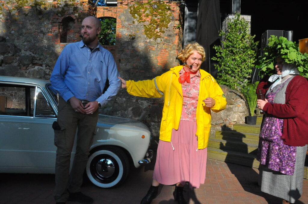 FOTO.VIDEO: Grobiņas pilsdrupās ar skaļām ovācijām uzņem vietējo talantu izspēlēto "Limuzīnu Jāņu nakts krāsā"