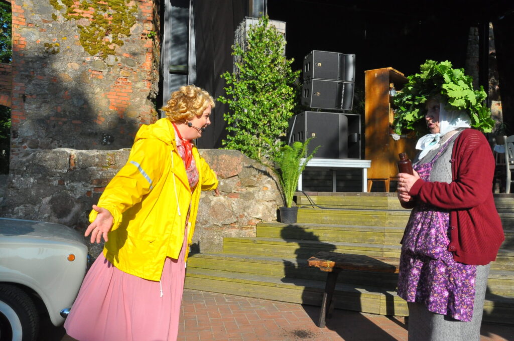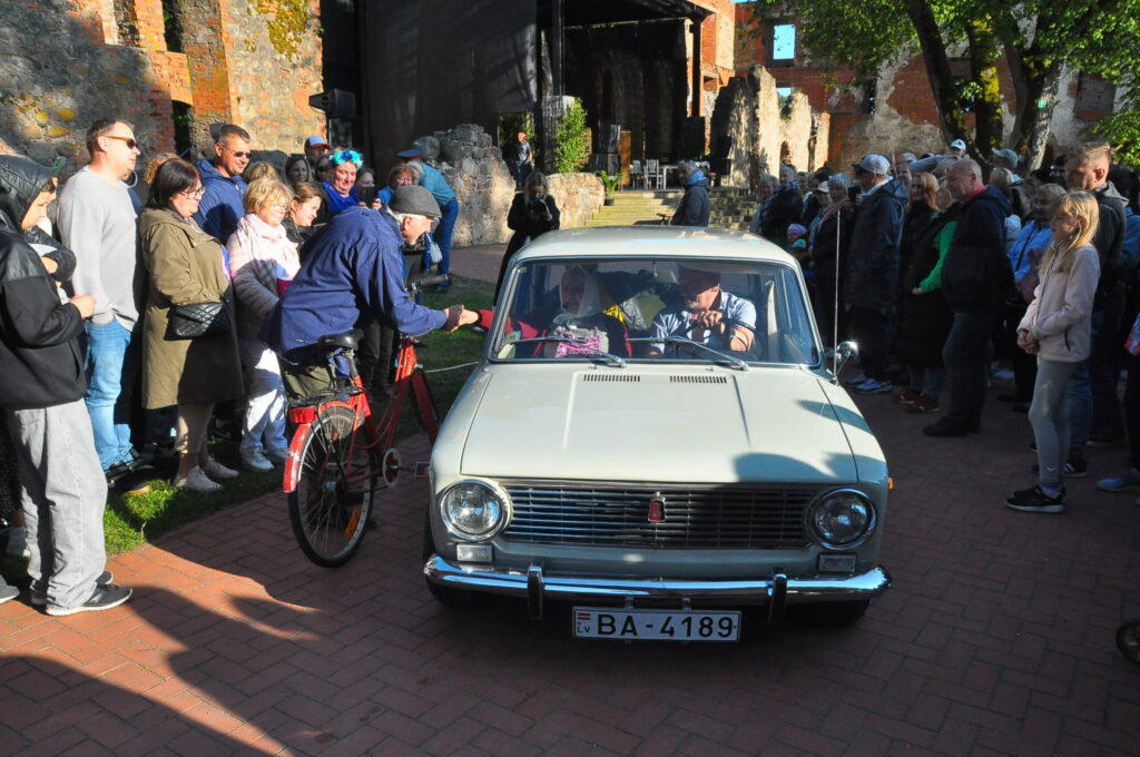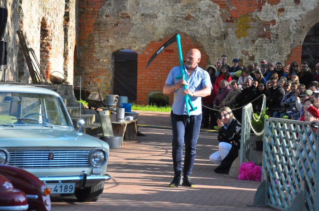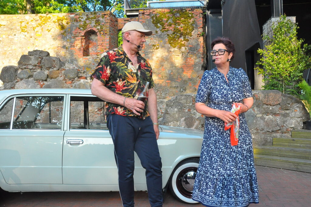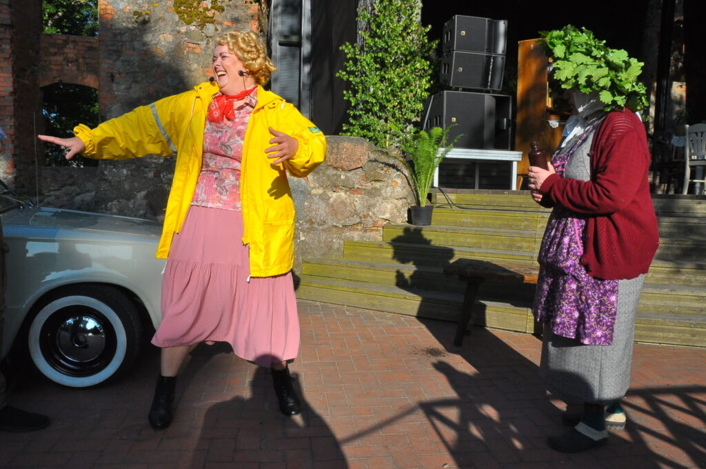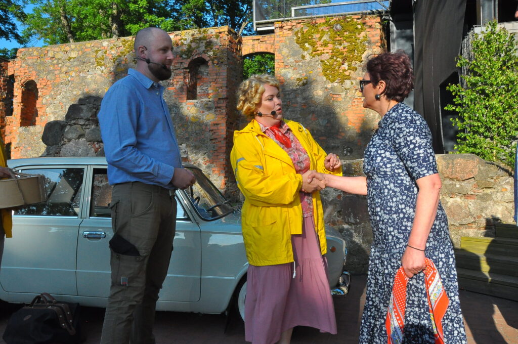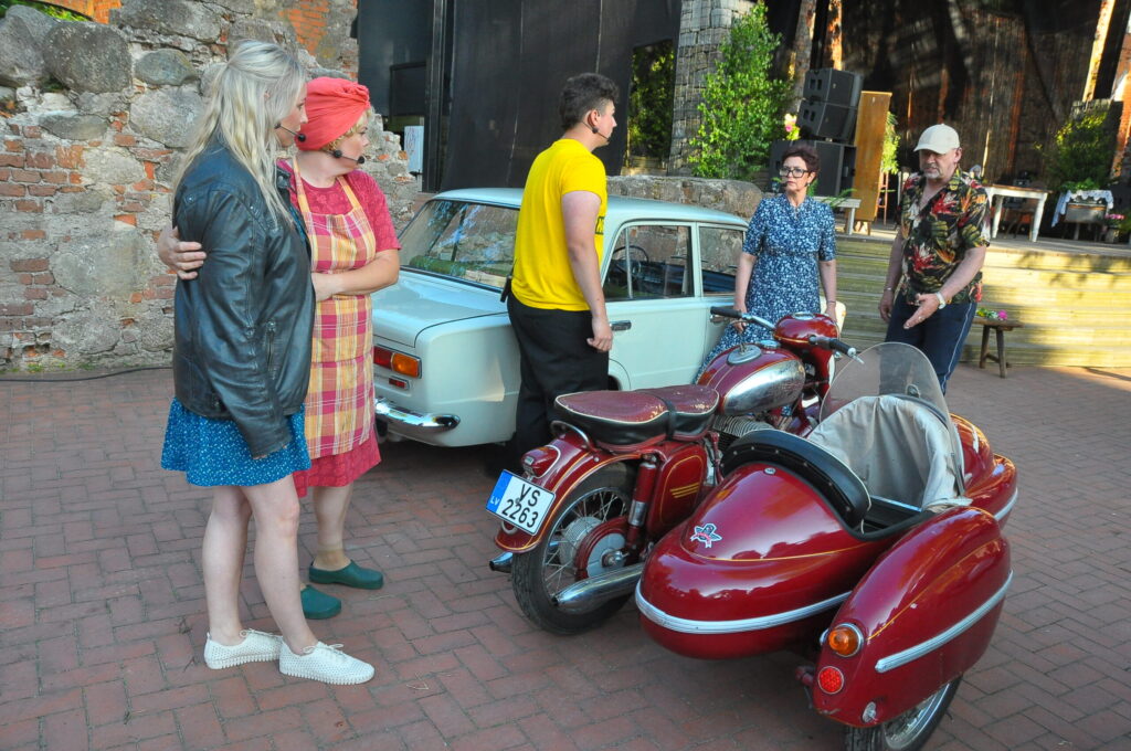 FOTO.VIDEO: Grobiņas pilsdrupās ar skaļām ovācijām uzņem vietējo talantu izspēlēto "Limuzīnu Jāņu nakts krāsā"