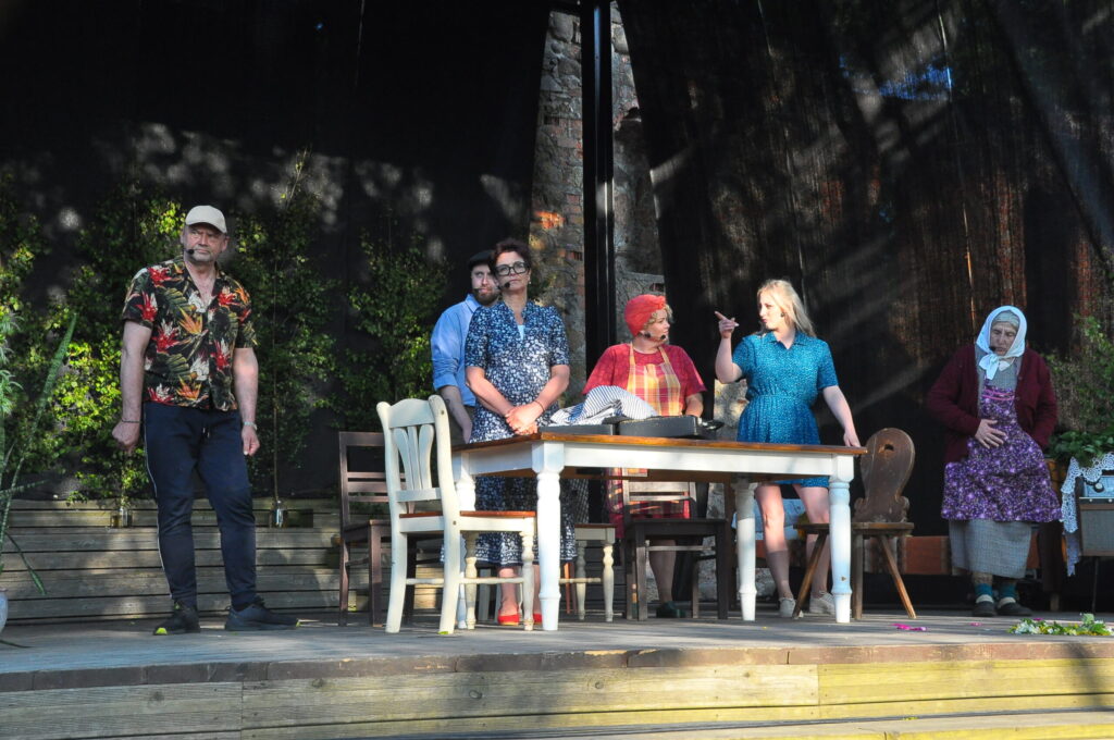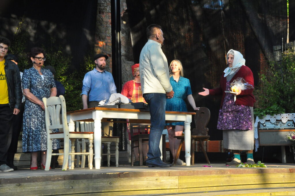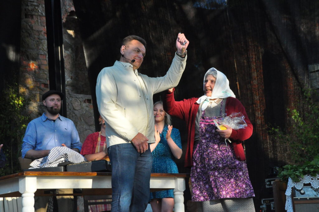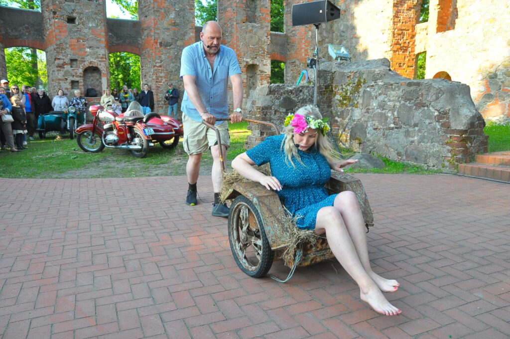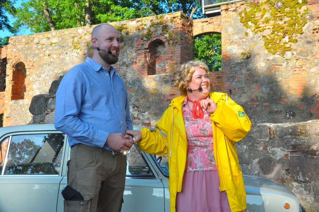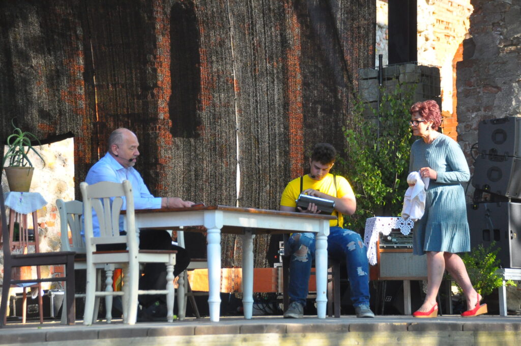 FOTO.VIDEO: Grobiņas pilsdrupās ar skaļām ovācijām uzņem vietējo talantu izspēlēto "Limuzīnu Jāņu nakts krāsā"