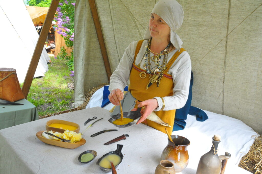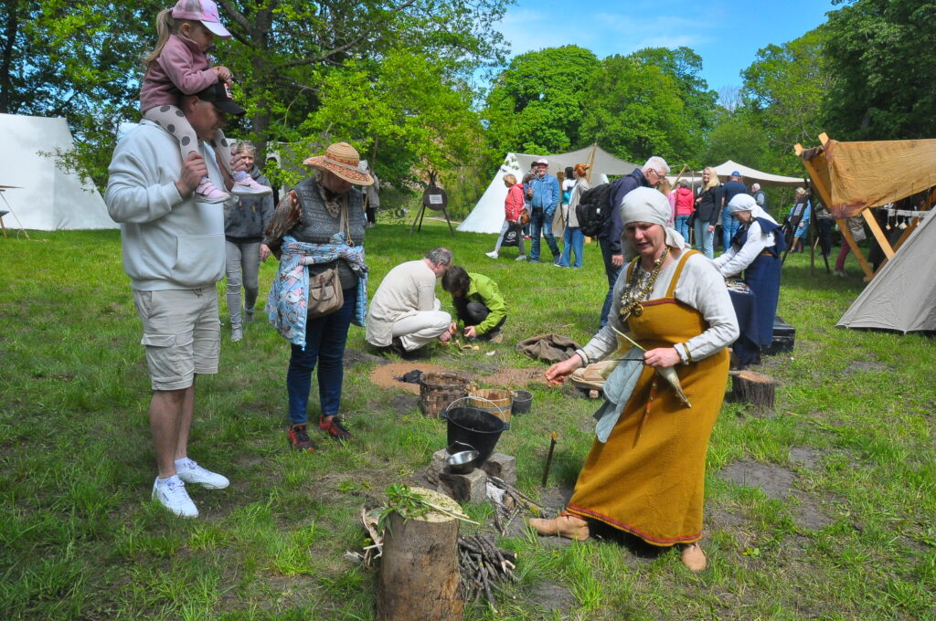 Senās vēstures festivāls “Seeburg” bija iekārtojies Skābaržkalnā, kur varēja iepazīst seno kuršu un citu baltu cilšu ikdienu, amatu prasmes, rotas, bruņas un tērpus.