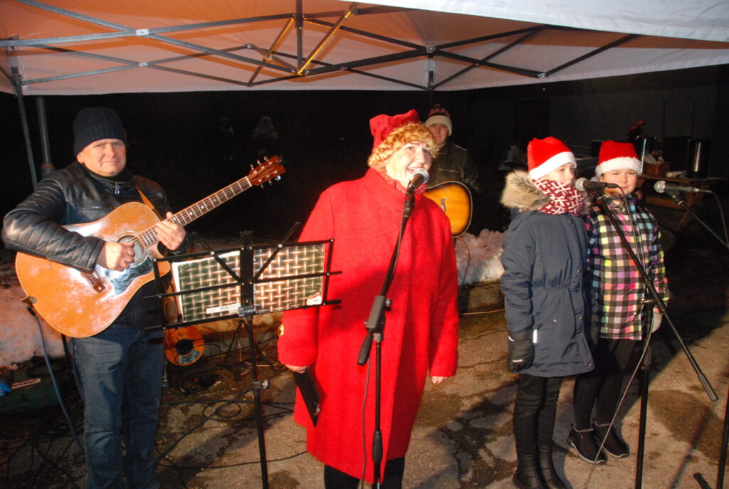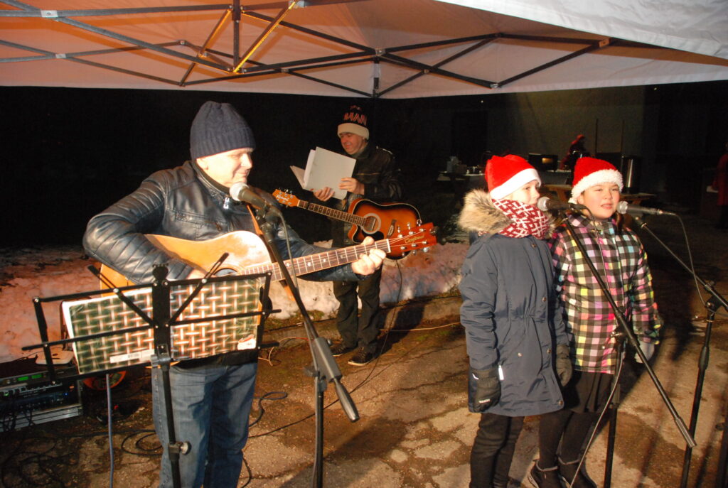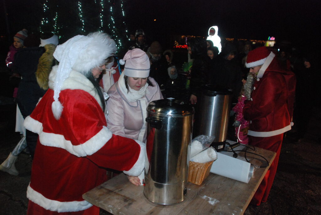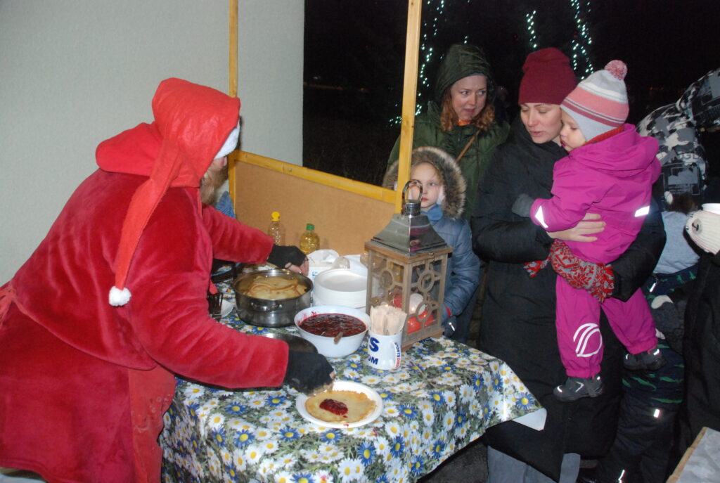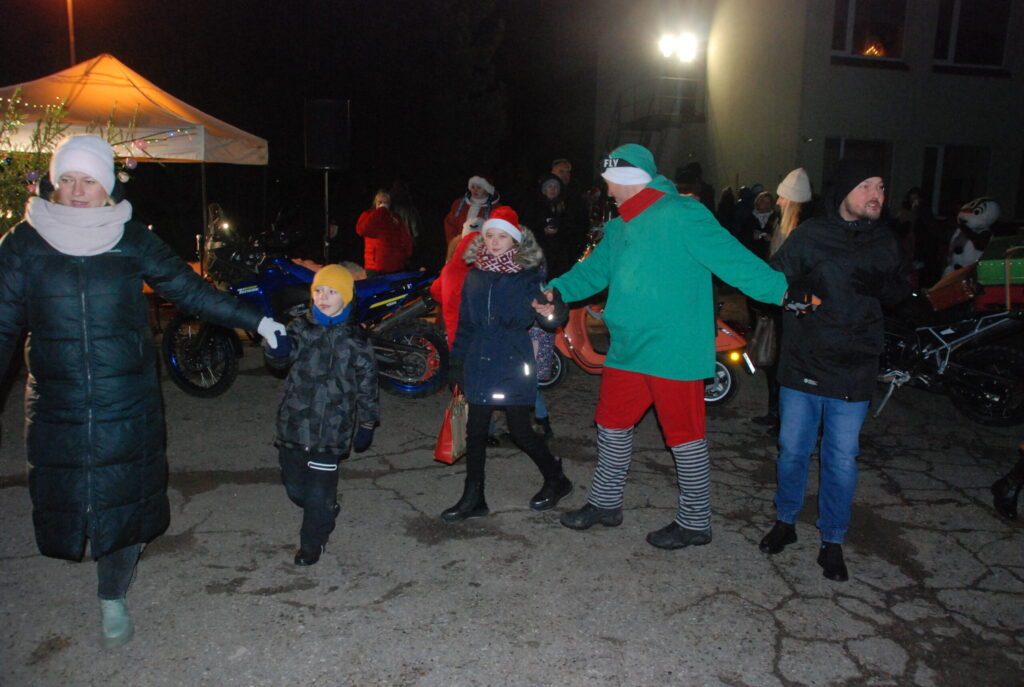 Ziemassvētku egles iedegšanā dziedāja kultūras nama pašdarbnieki, bija gardas pankūkas, piparkūkas un varēja sasildīties ar karsto dzērienu. Kad egle iemirdzējās svētku rotā, ar savu komandu uz močiem ieradās Ziemassvētku vecītis, kam Kazdangas un Kalvenes pagastu apvienības pārvaldes vadītājs Jānis Tīmanis nodeva naktsmītnes atslēgu, lai vecītis Kalvenē var pavadīt visu svētku mēnesi.