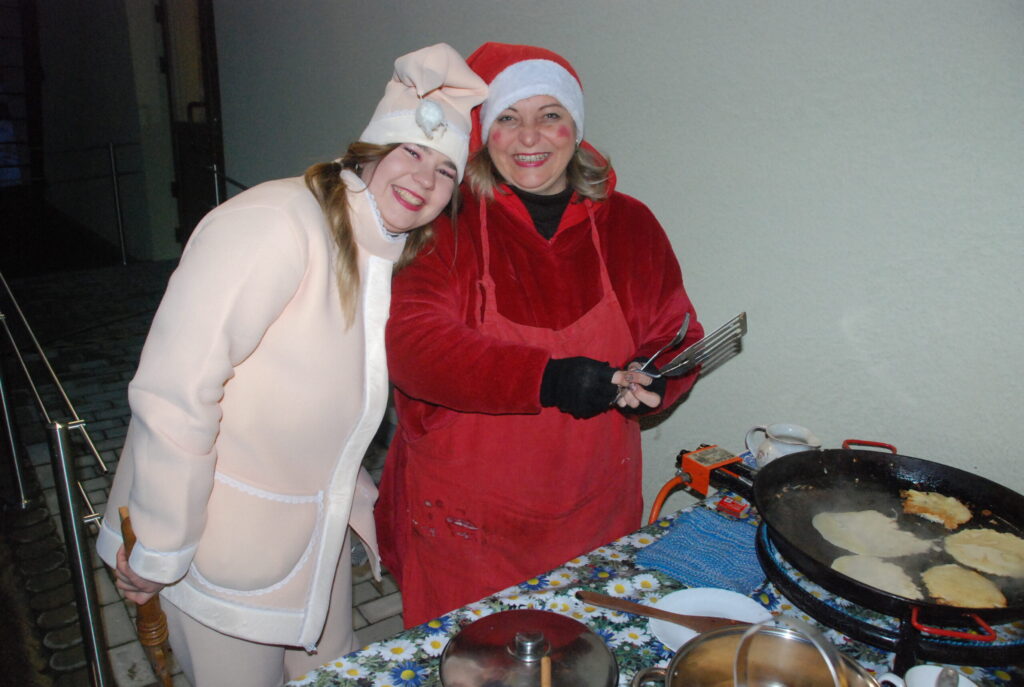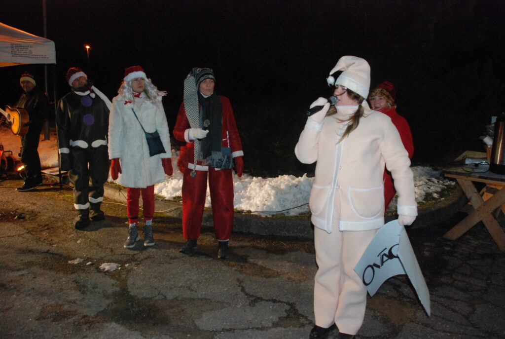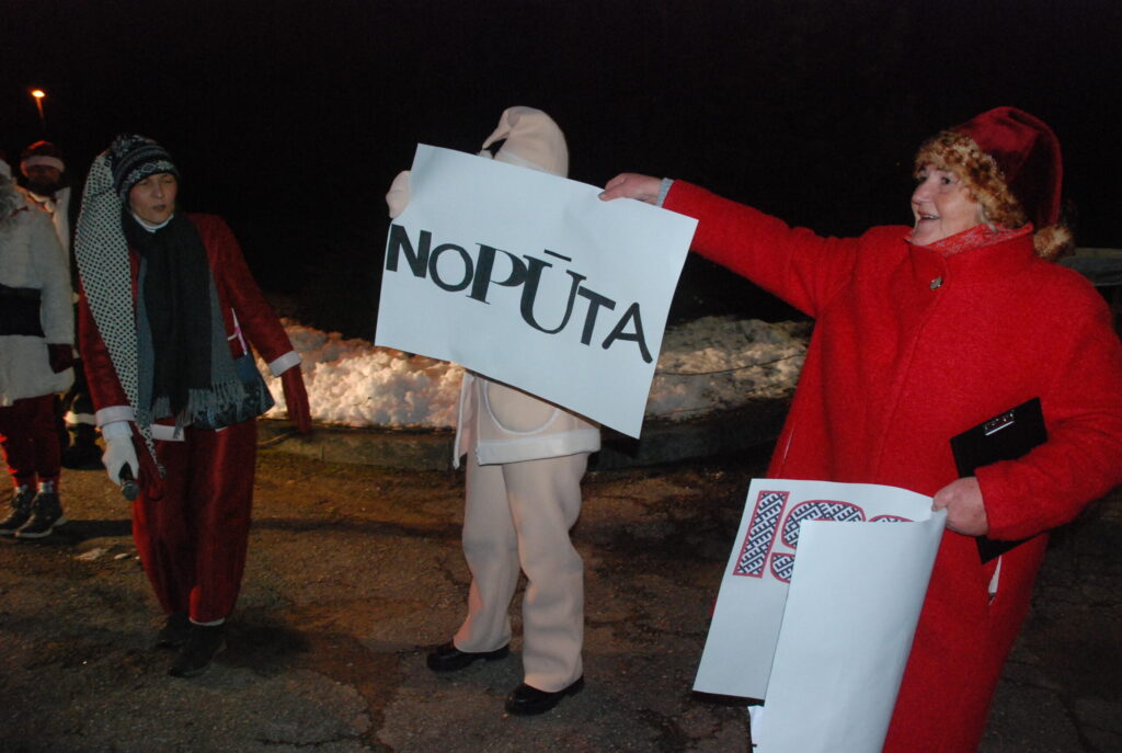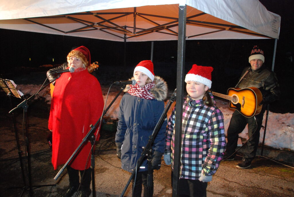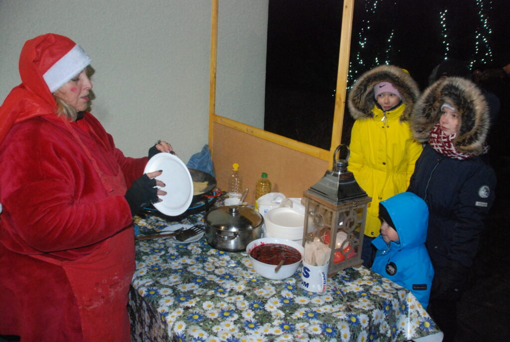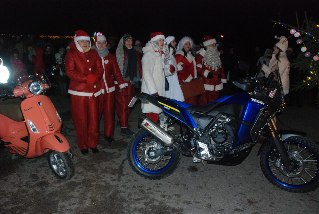 Ziemassvētku egles iedegšanā dziedāja kultūras nama pašdarbnieki, bija gardas pankūkas, piparkūkas un varēja sasildīties ar karsto dzērienu. Kad egle iemirdzējās svētku rotā, ar savu komandu uz močiem ieradās Ziemassvētku vecītis, kam Kazdangas un Kalvenes pagastu apvienības pārvaldes vadītājs Jānis Tīmanis nodeva naktsmītnes atslēgu, lai vecītis Kalvenē var pavadīt visu svētku mēnesi.