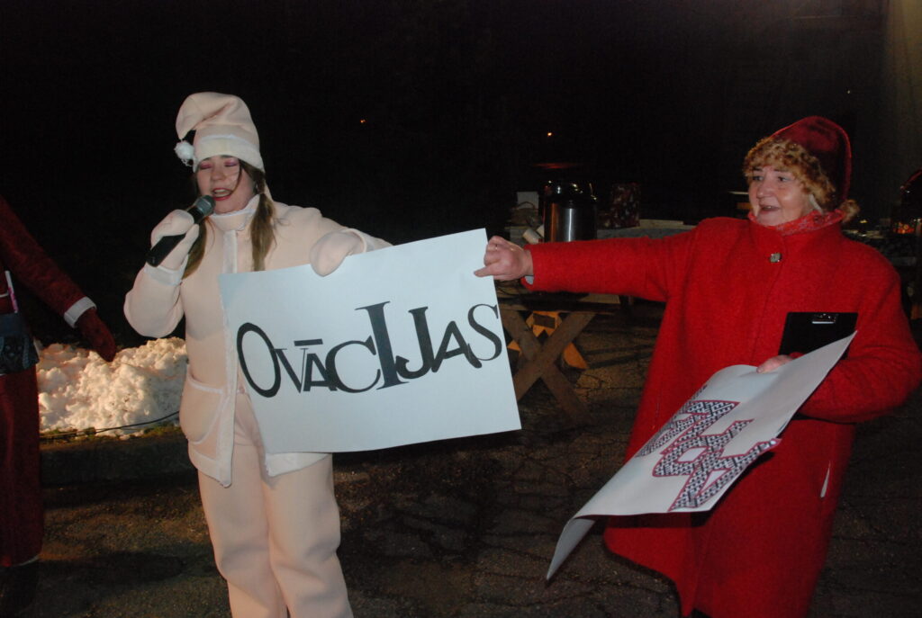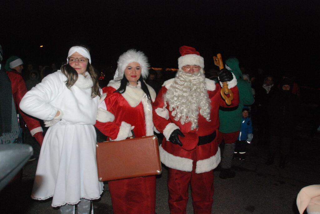 FOTO.VIDEO: Kalvenē jaudīgi iededz Ziemassvētku egli un sagaida Ziemassvētku vecīti