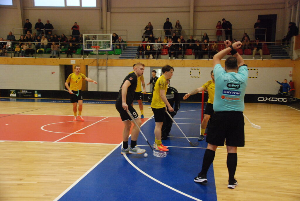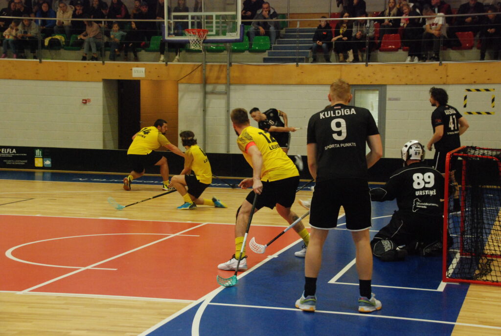 Mačā pret kuldīdzniekiem “Leģions/Grobiņas SC” jau 27. sekundē nokļuva zaudētāju lomā. Perioda vidū Dainis Baumanis rezultātu izlīdzināja, bet viesi ar realizētu soda metienu vēlreiz atjaunoja vadību – 1:2. Pēc Aivara Dēvica gūtajiem vārtiem pēc pirmā perioda rezultāts bija neizšķirts – 2:2.