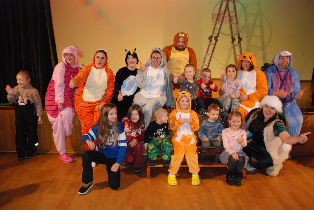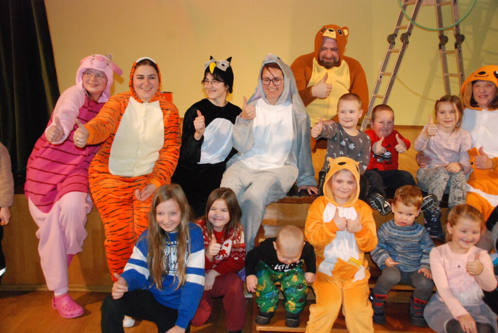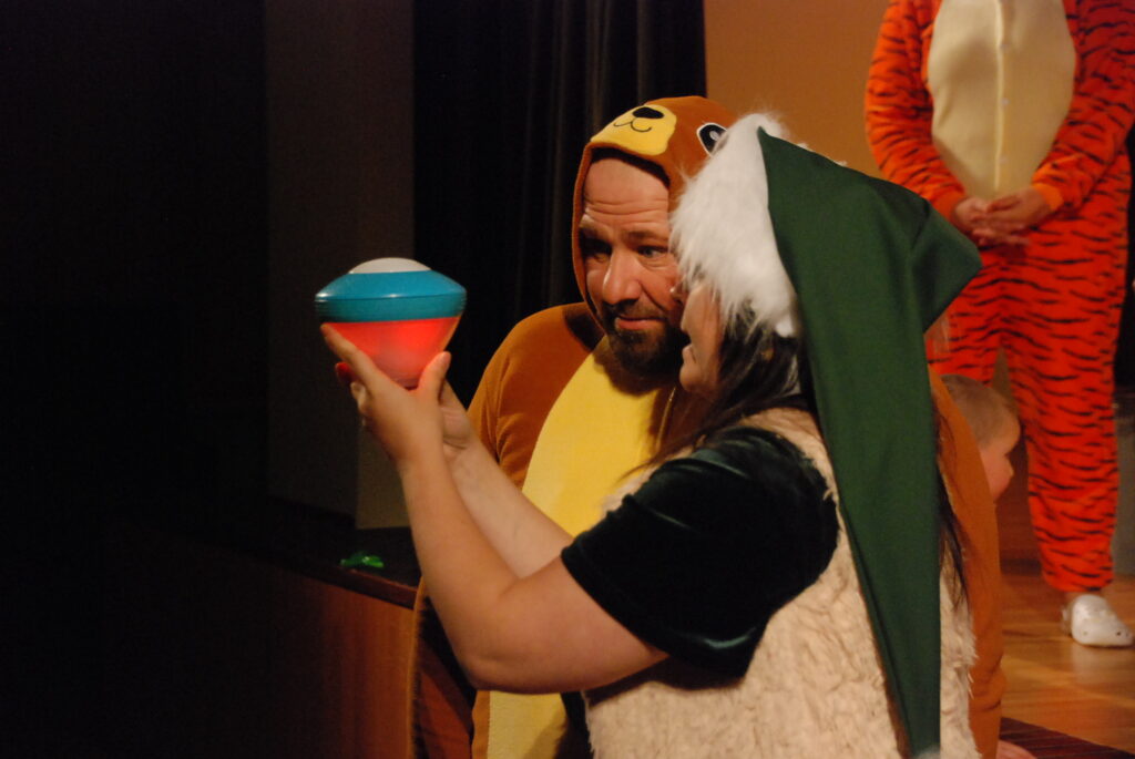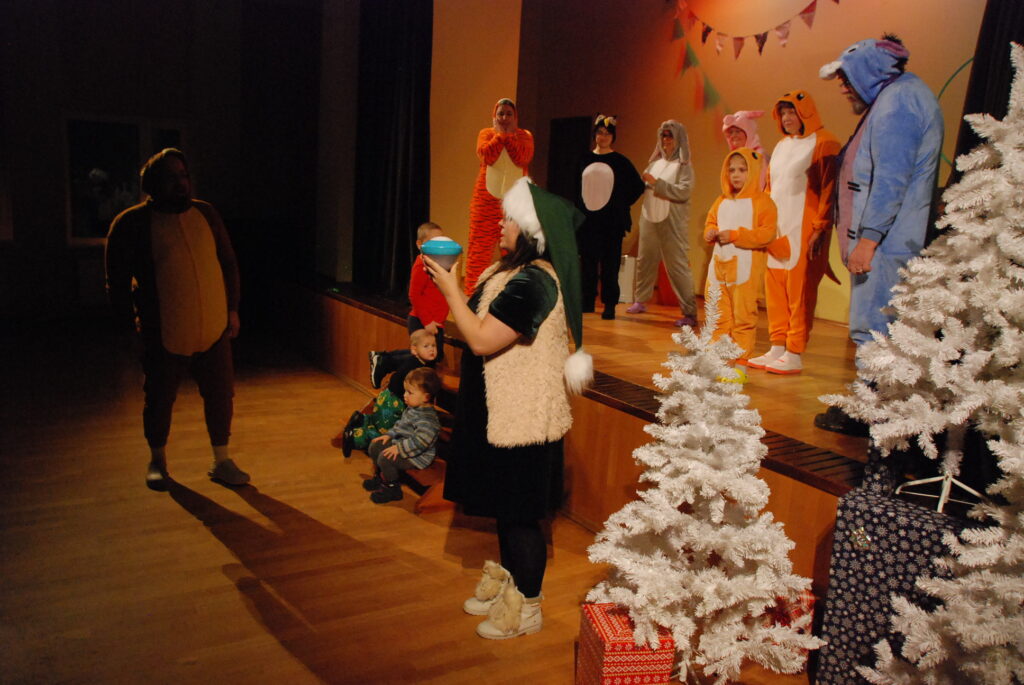 Pirms egles iedegšanas Otaņķu tautas nama pilnajā zālē Dienvidkurzemes novada amatierteātru skatē Vērgales amatierteātris spēlēja izrādi “Vinnijs Pūks un viņa draugi”.