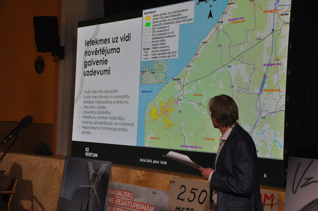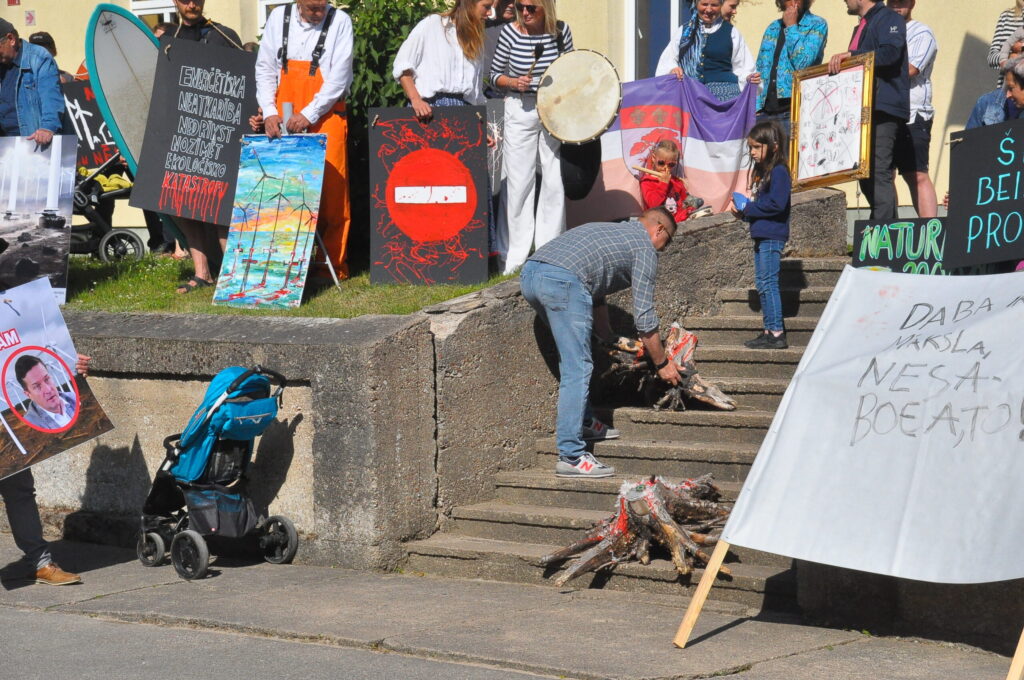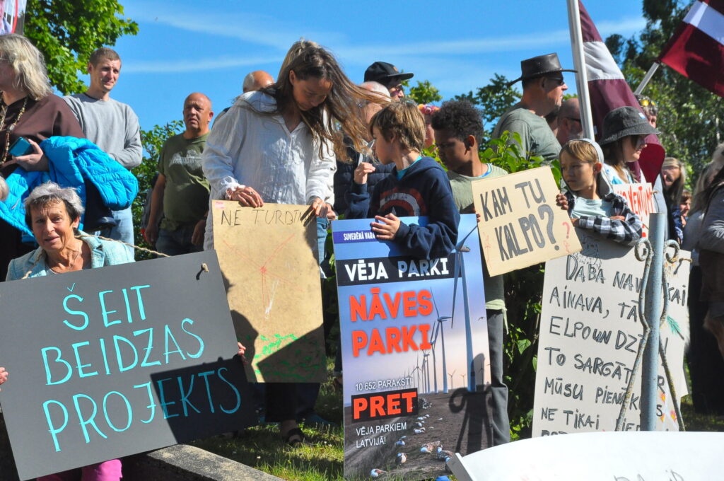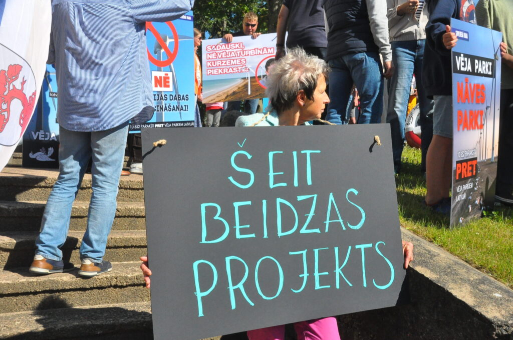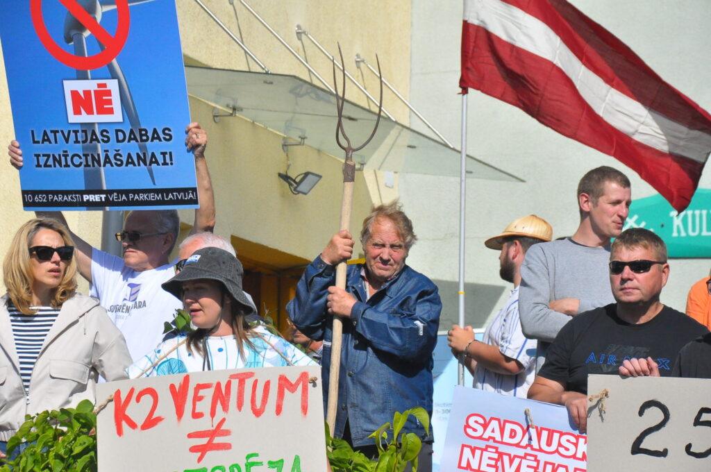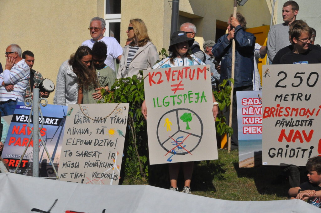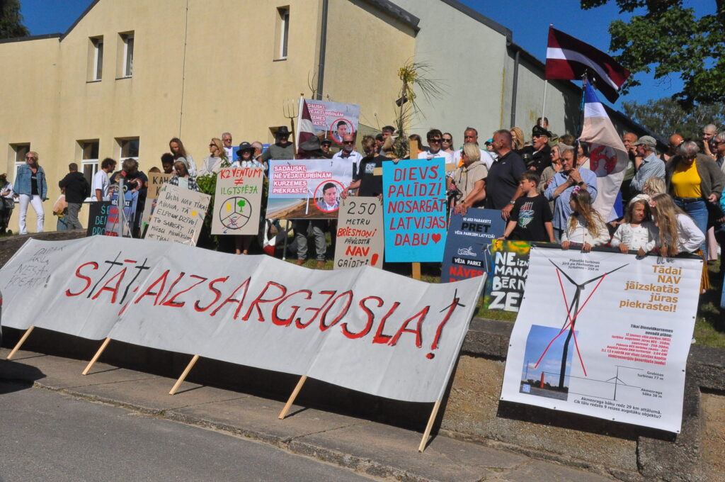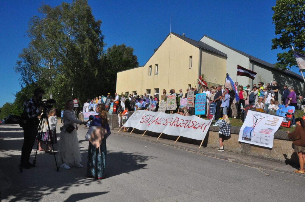 Pirmdien, 30. jūnijā, pie Pāvilostas kultūras namā notika protesta akcija pret plānoto vēja elektrostaciju parku Dienvidkurzemes novada Sakas pagasta mežu teritorijā. Savukārt Pāvilostas kultūras namā un Alsungas kultūras namā pirmdien notika sabiedriskās apspriešanas sanāksmes par trešo pārstrādāto ietekmes uz vidi ziņojumu (IVN) plānotajam vēja elektrostaciju parkam.