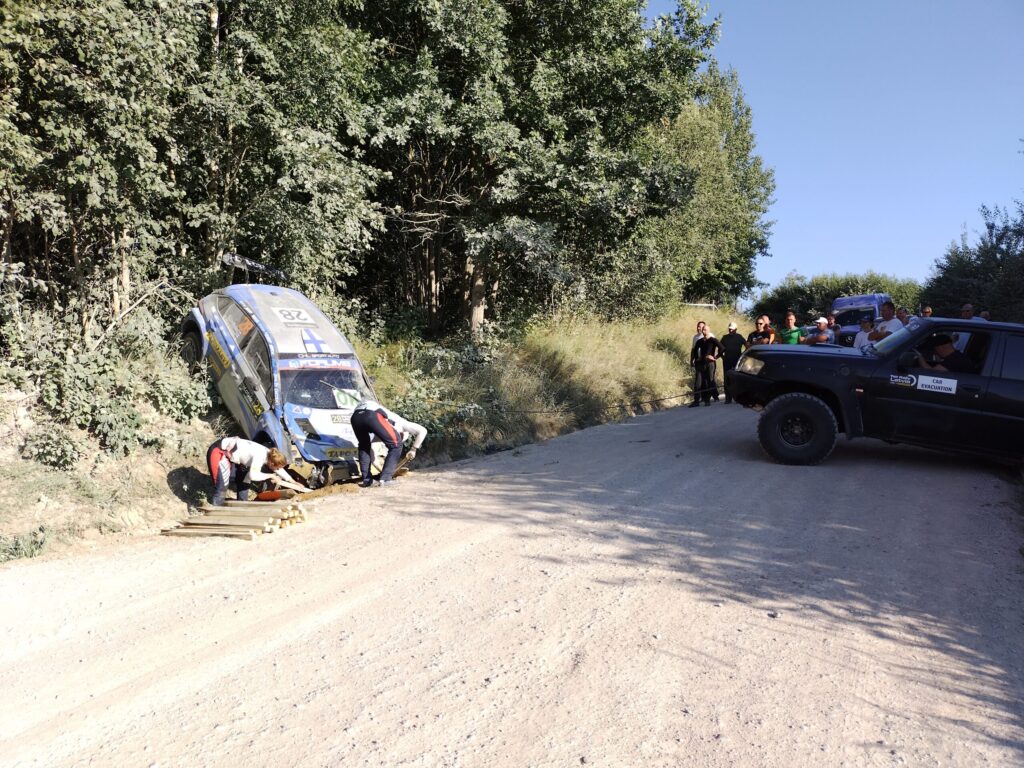 Pēc 14. ātrumposma beigām uz brīdi ceļš bija bloķēts Rokasbirzes virzienā, jo no stāvā grāvja malas bija jānovelk somu ekipāžas automašīna, kas bija avarējusi līkumā pret kalnu.