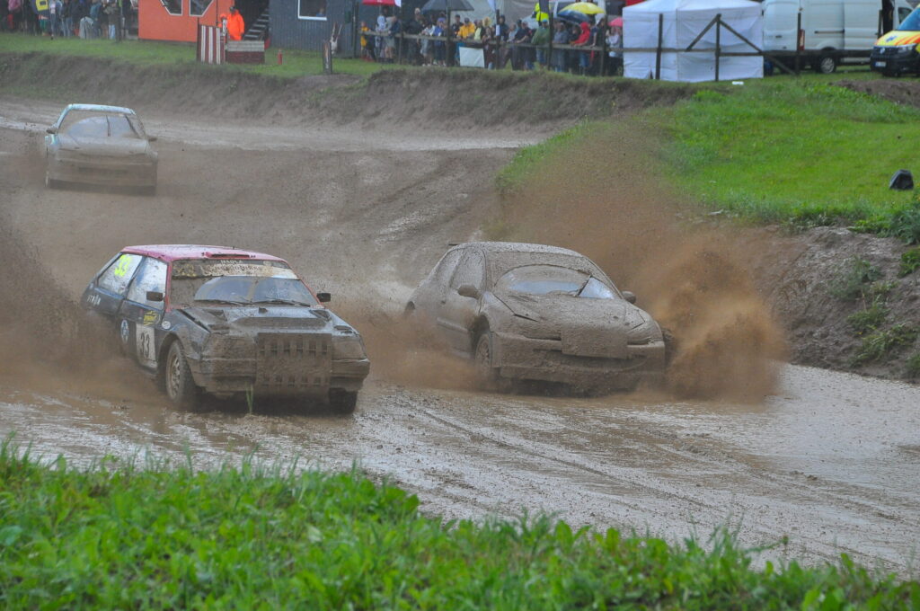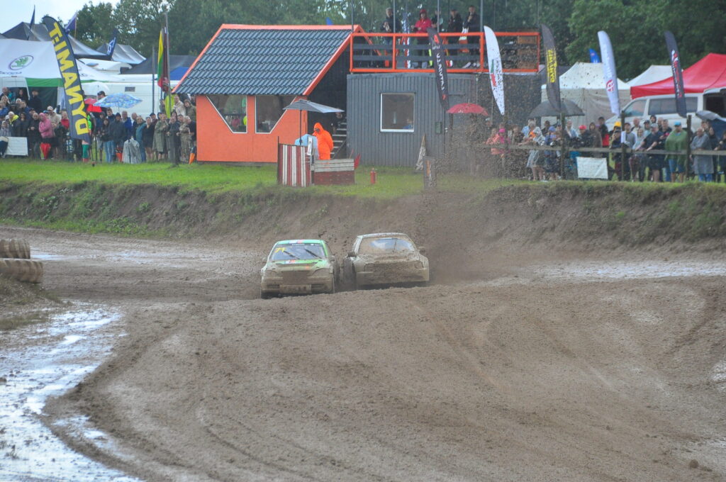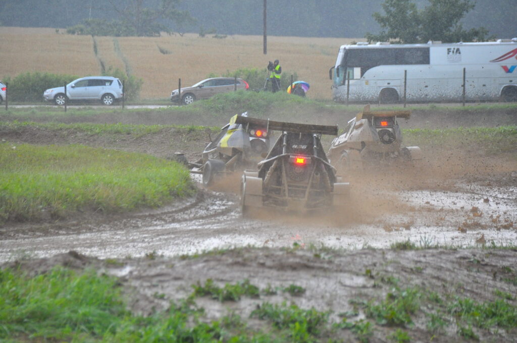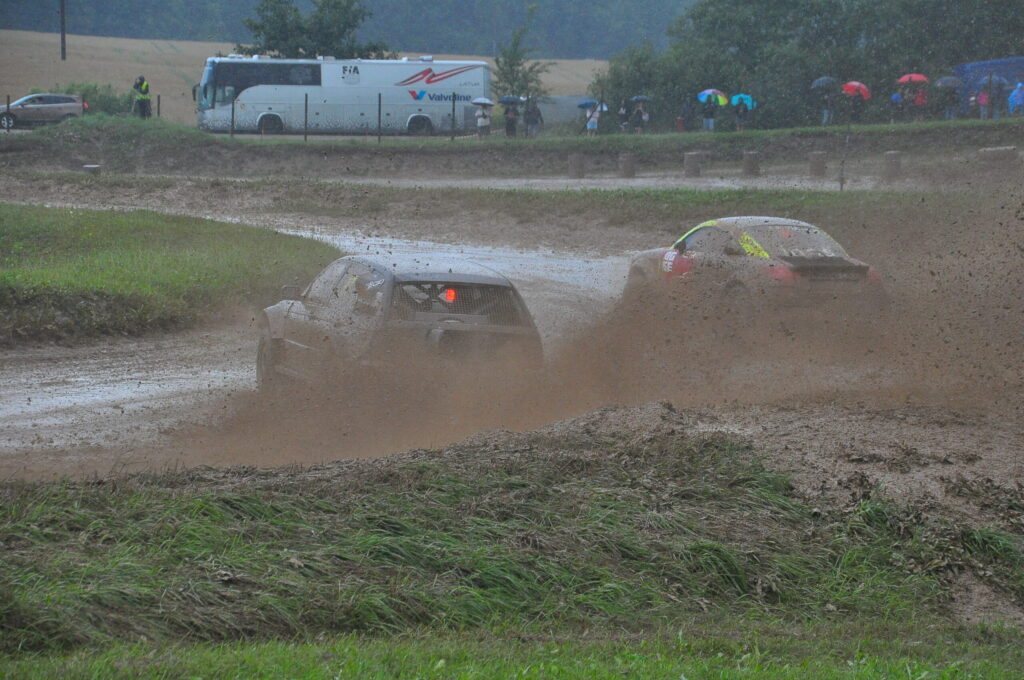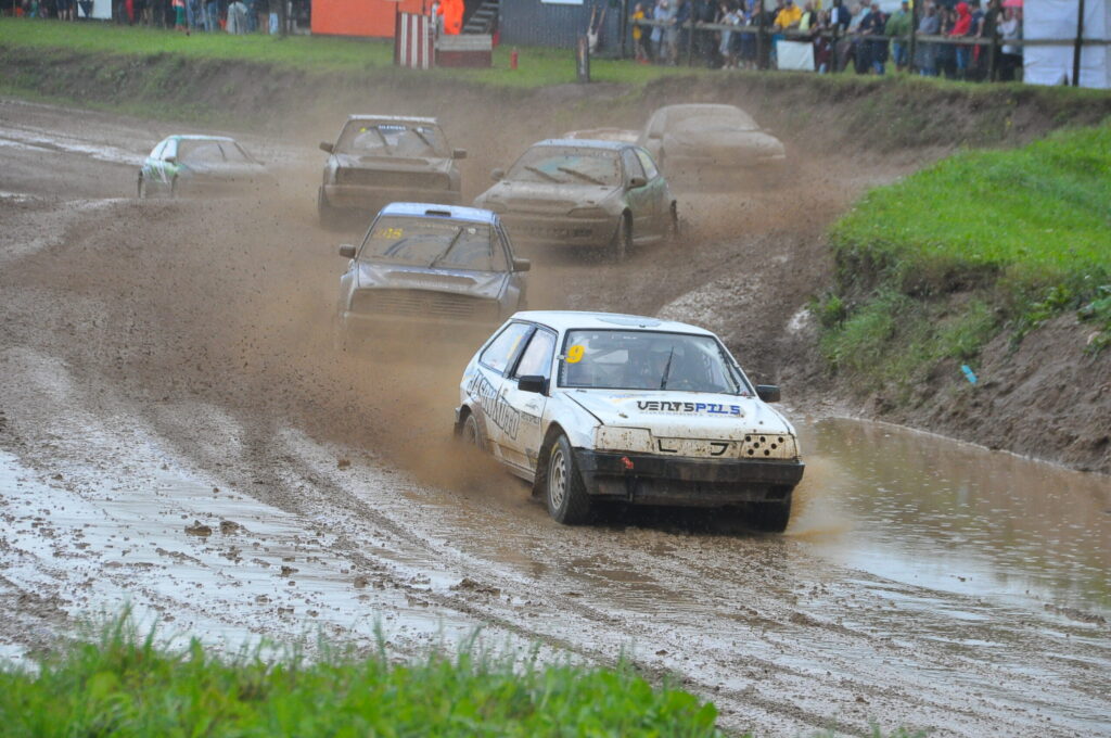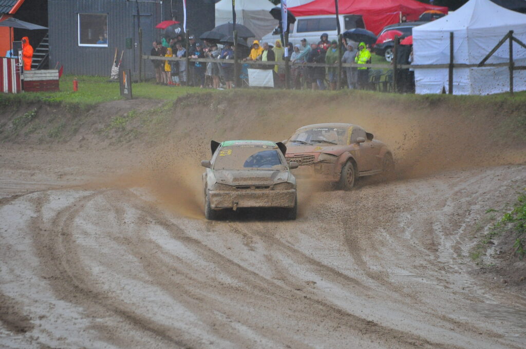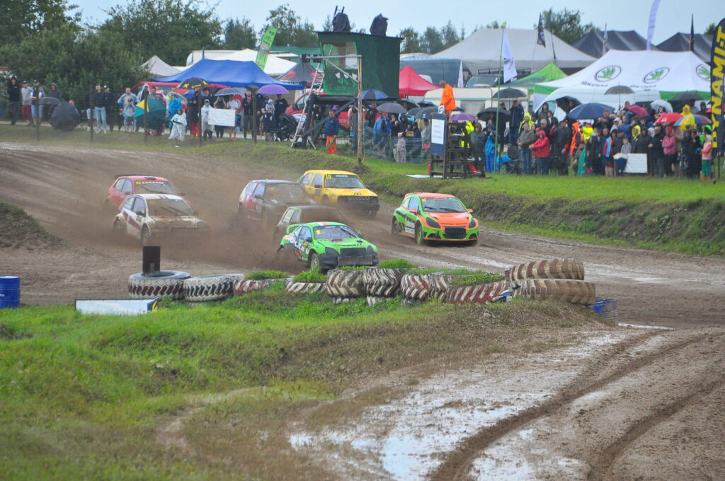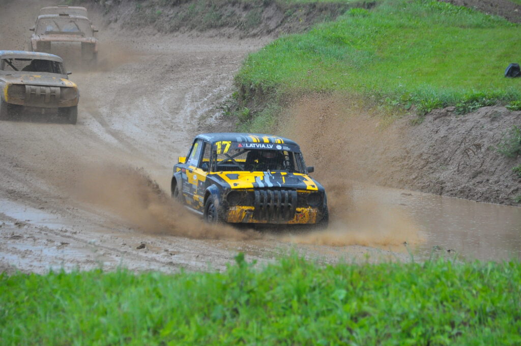 FOTO.VIDEO: Vecpils autotrasē Latvijas autokrosa čempionāta dalībniekus sagaida negaiss un ilgstošas lietusgāzes