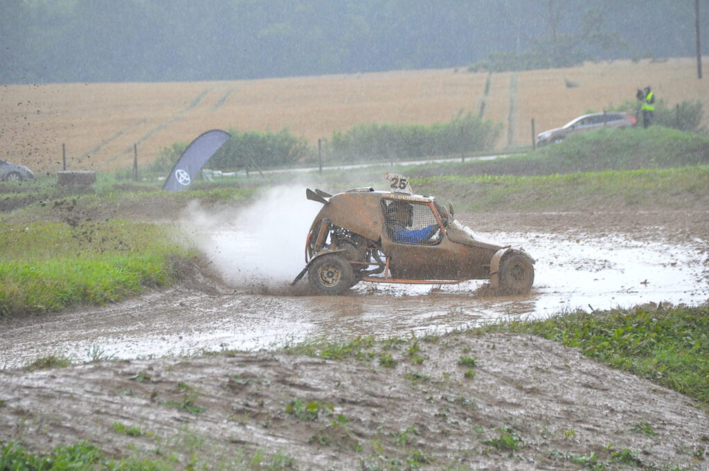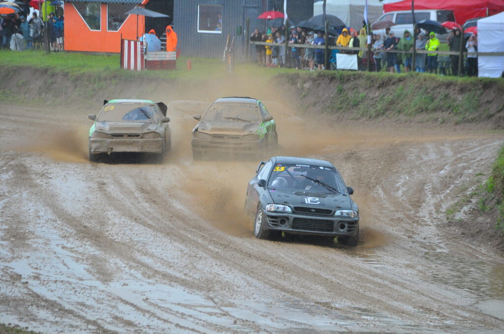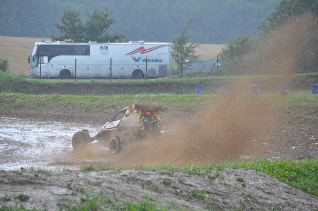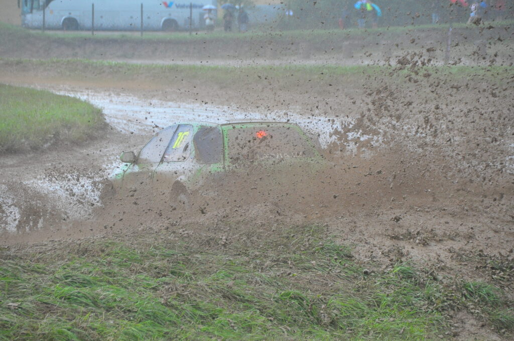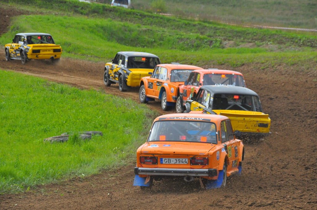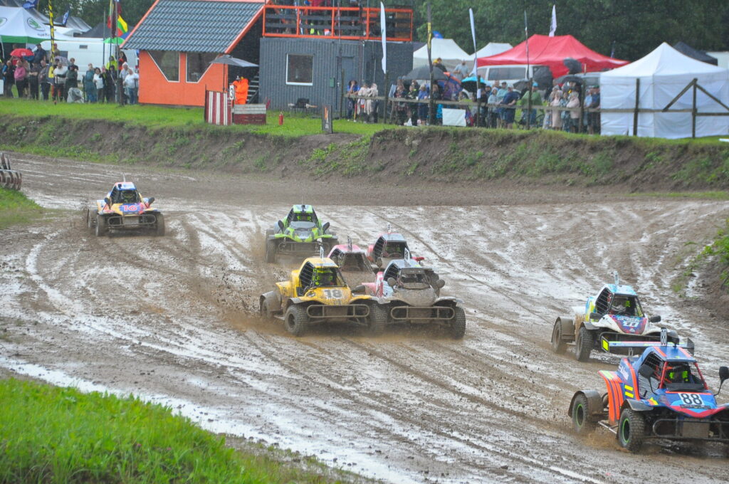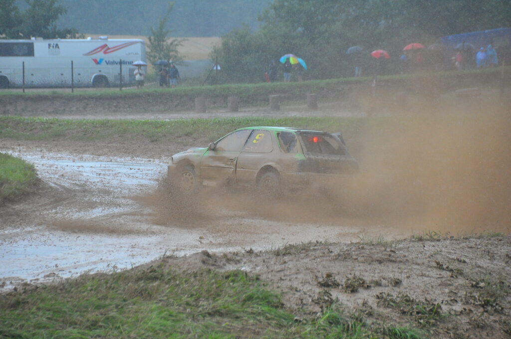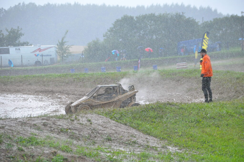 FOTO.VIDEO: Vecpils autotrasē Latvijas autokrosa čempionāta dalībniekus sagaida negaiss un ilgstošas lietusgāzes