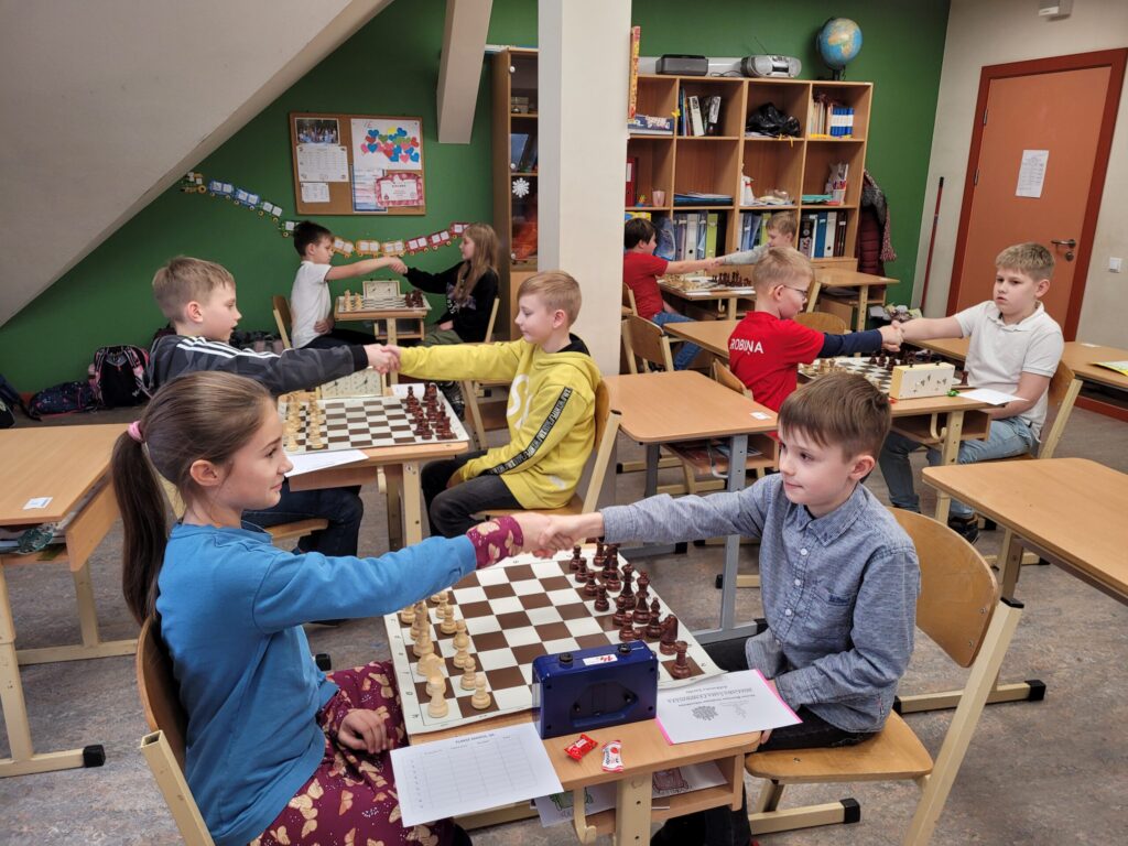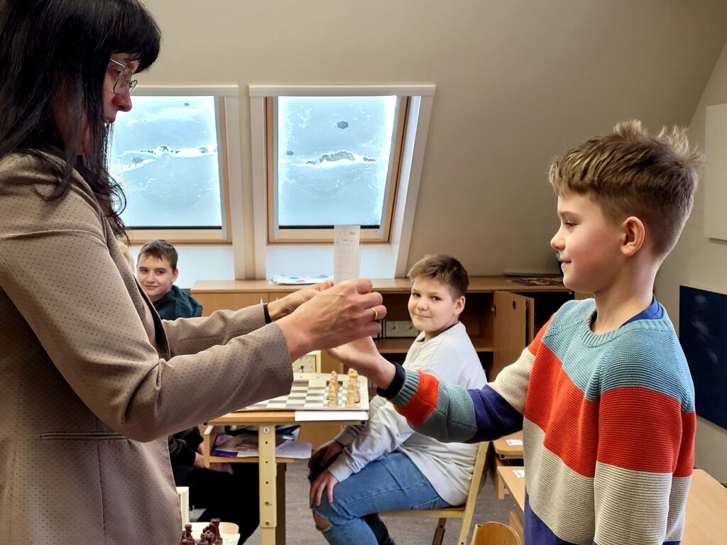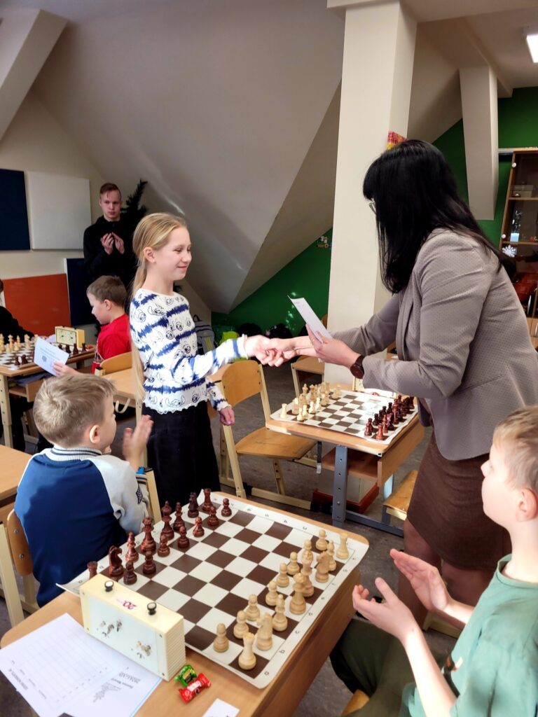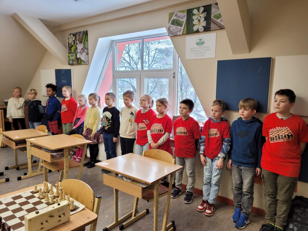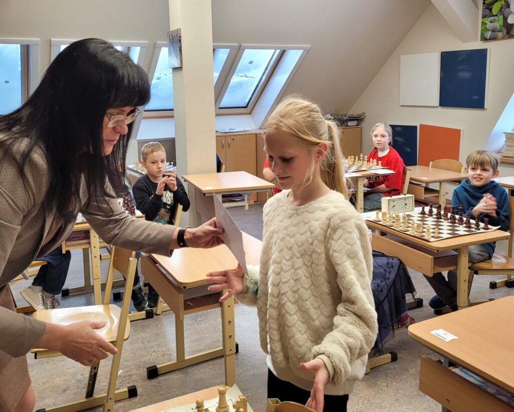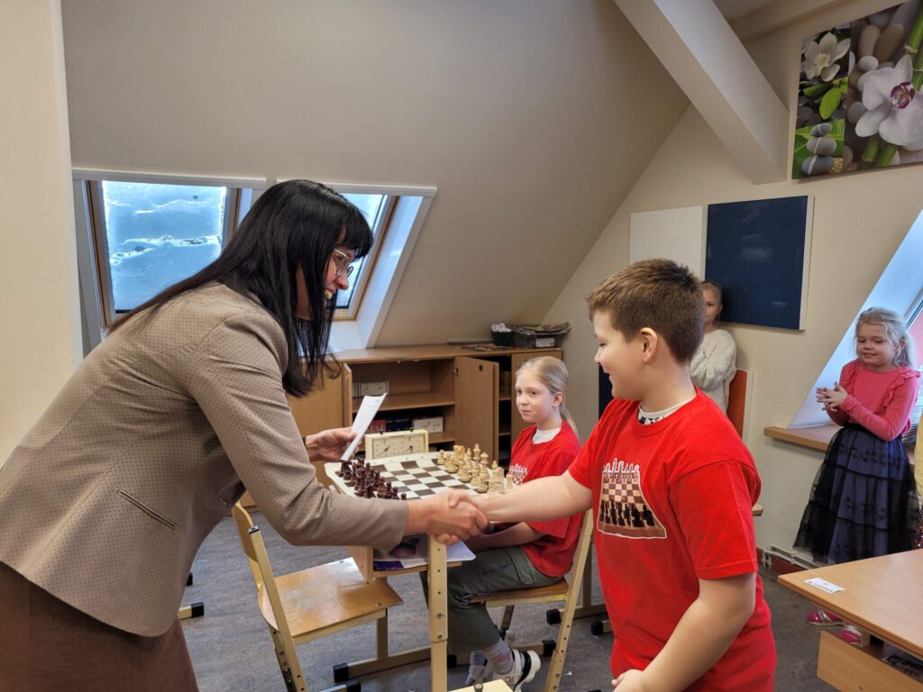 Skolas čempionāta turnīrus atklāja direktore Laila Roga un vietniece Linda Astrauska, kas katram turnīra šahistam dāvāja dalībnieka kartīti, kurā tiks ierakstītas gan uzvaras, gan zaudējumi un neizšķirti.