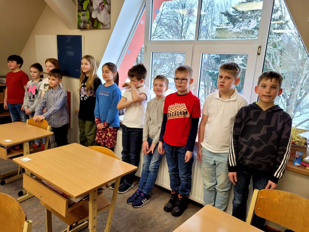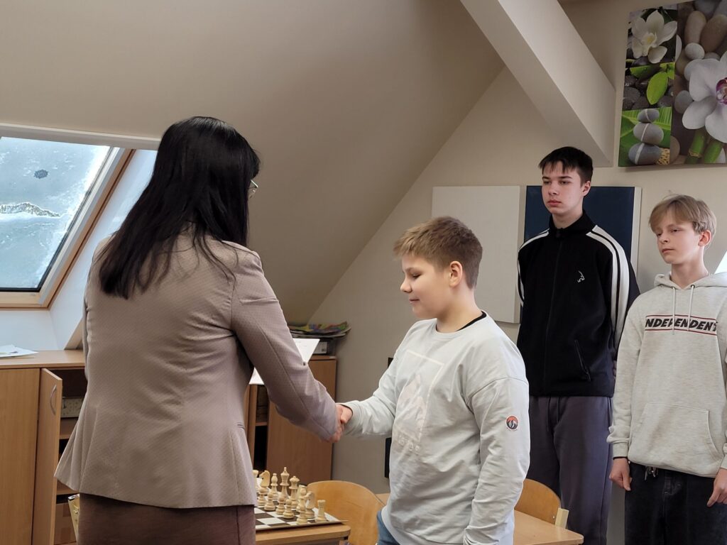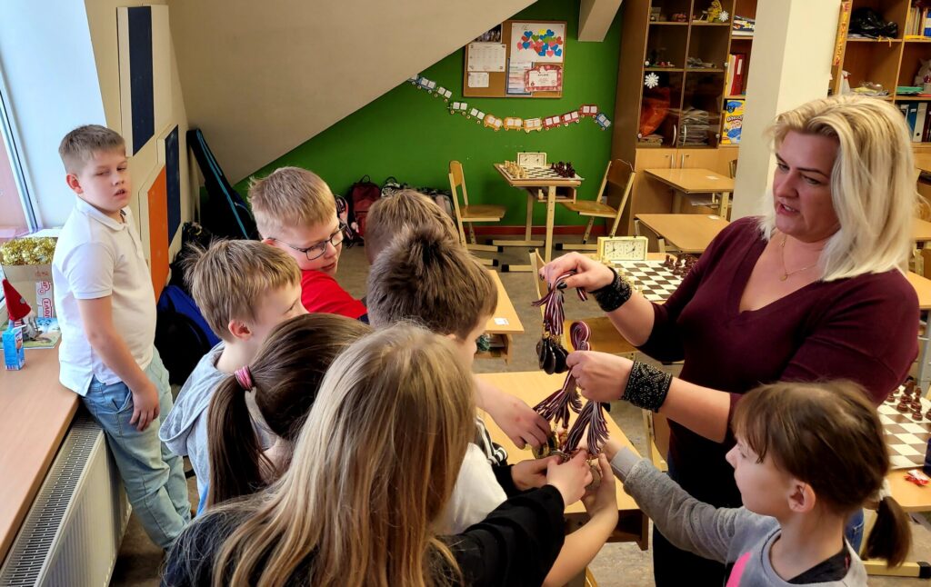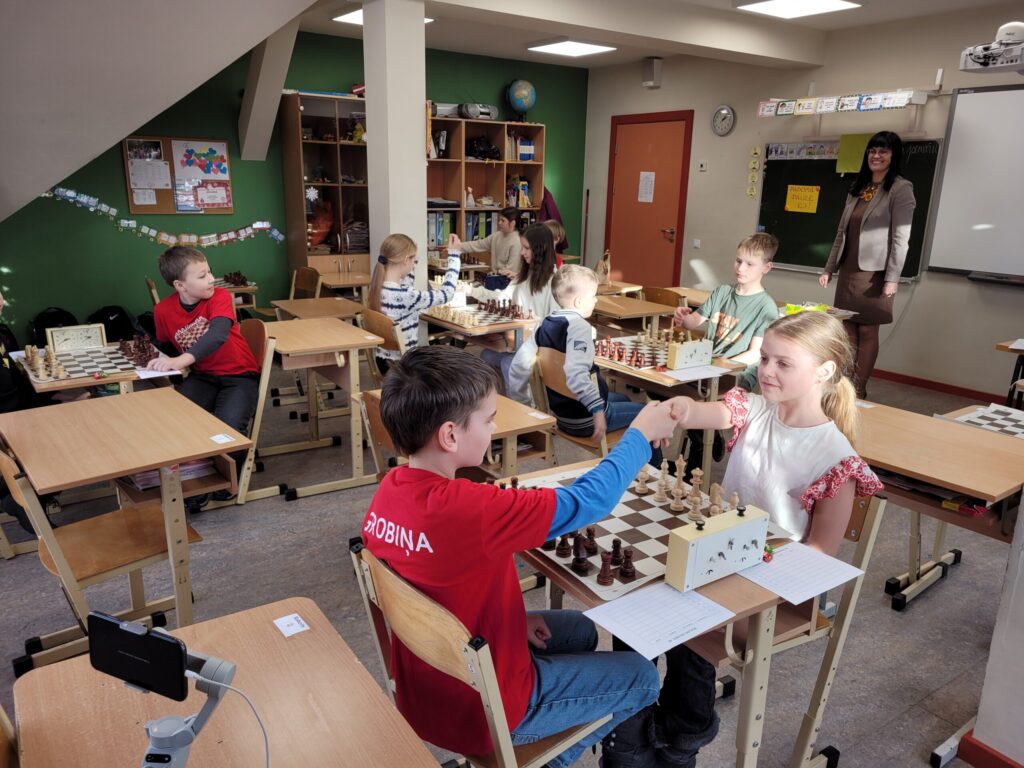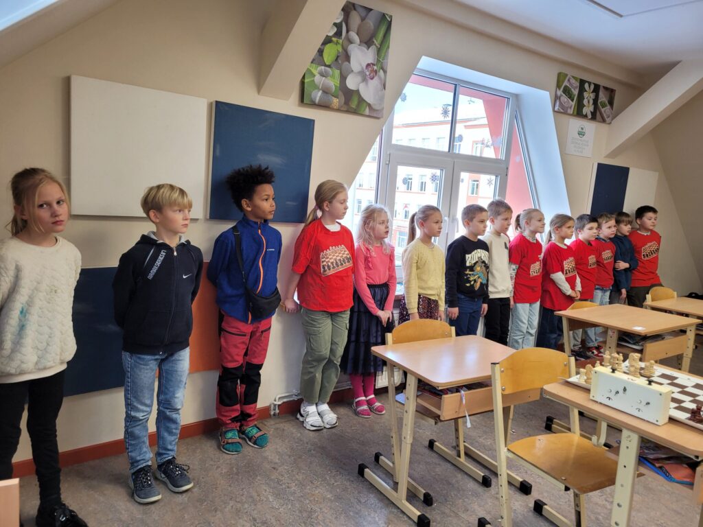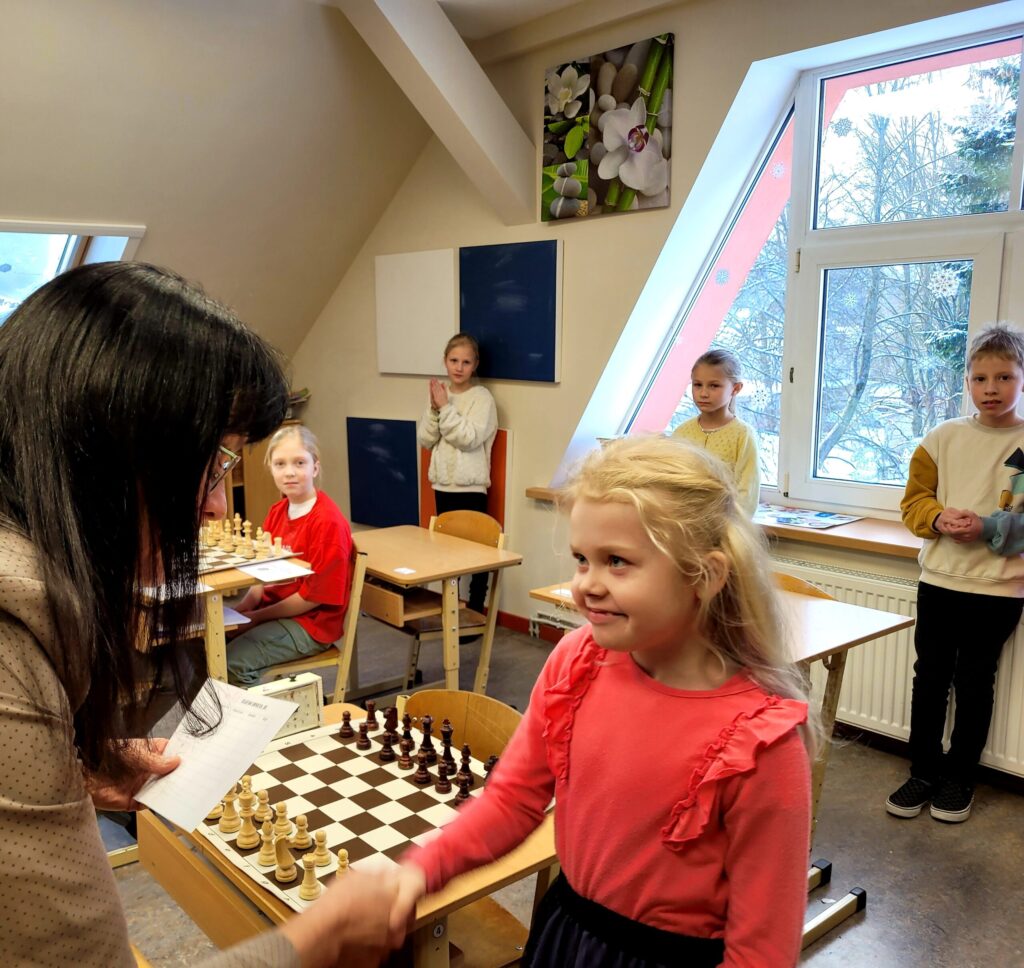 Skolas čempionāta turnīrus atklāja direktore Laila Roga un vietniece Linda Astrauska, kas katram turnīra šahistam dāvāja dalībnieka kartīti, kurā tiks ierakstītas gan uzvaras, gan zaudējumi un neizšķirti.