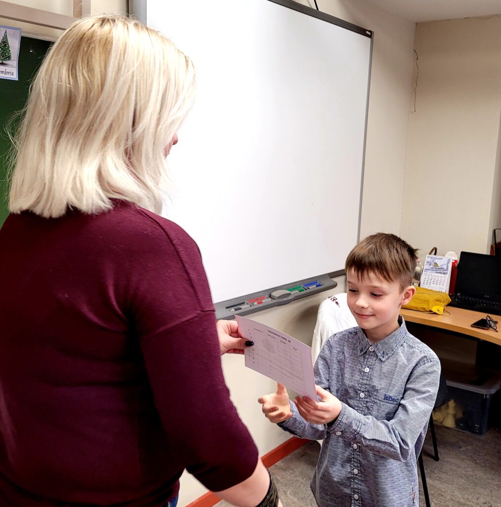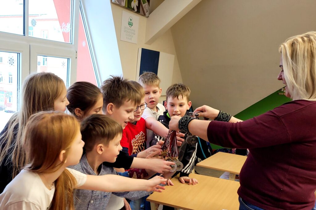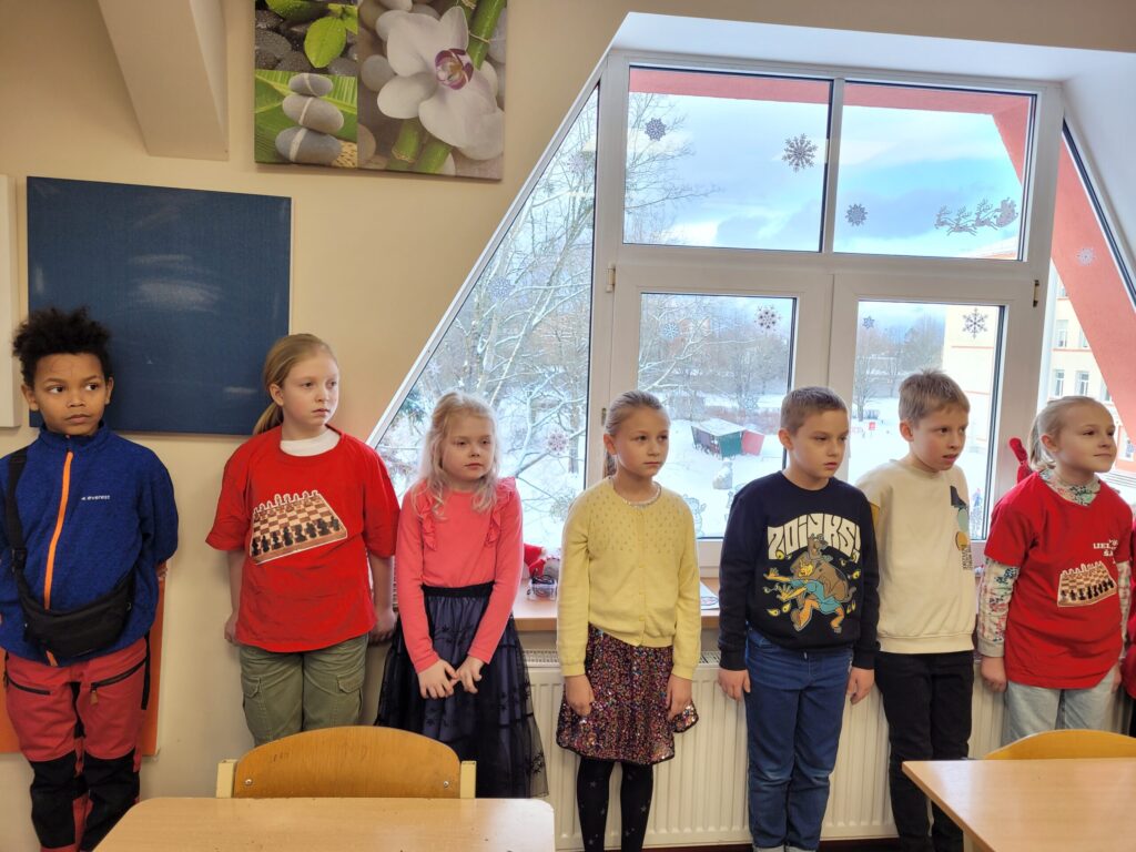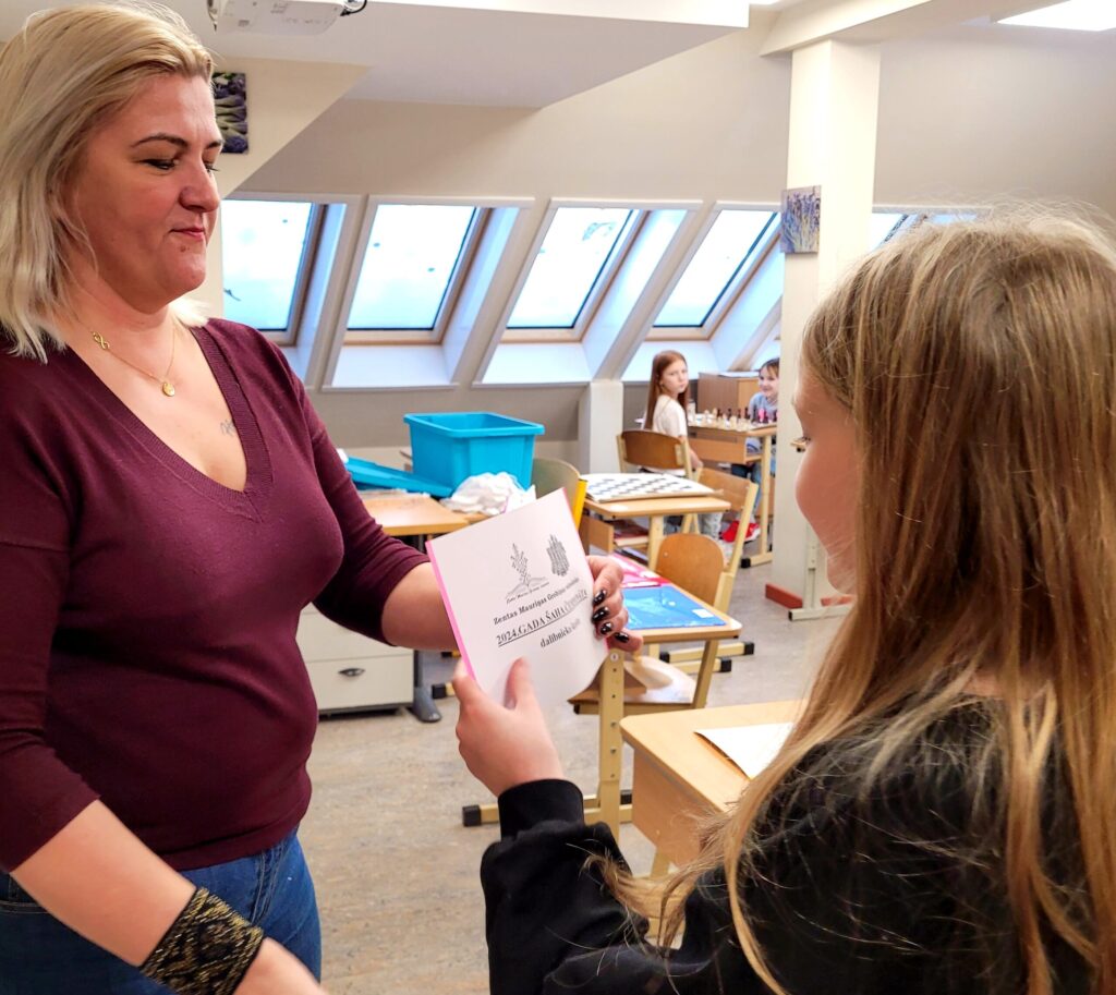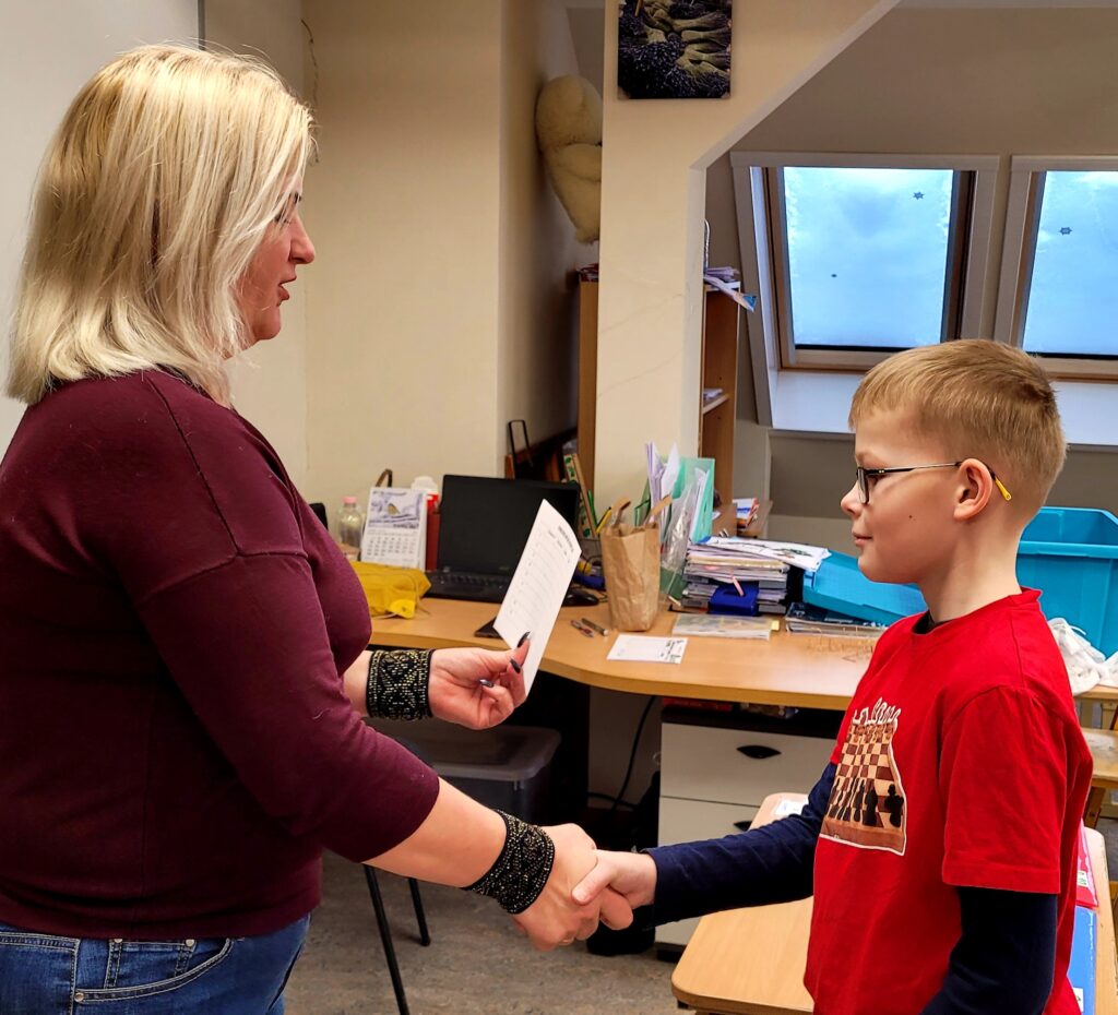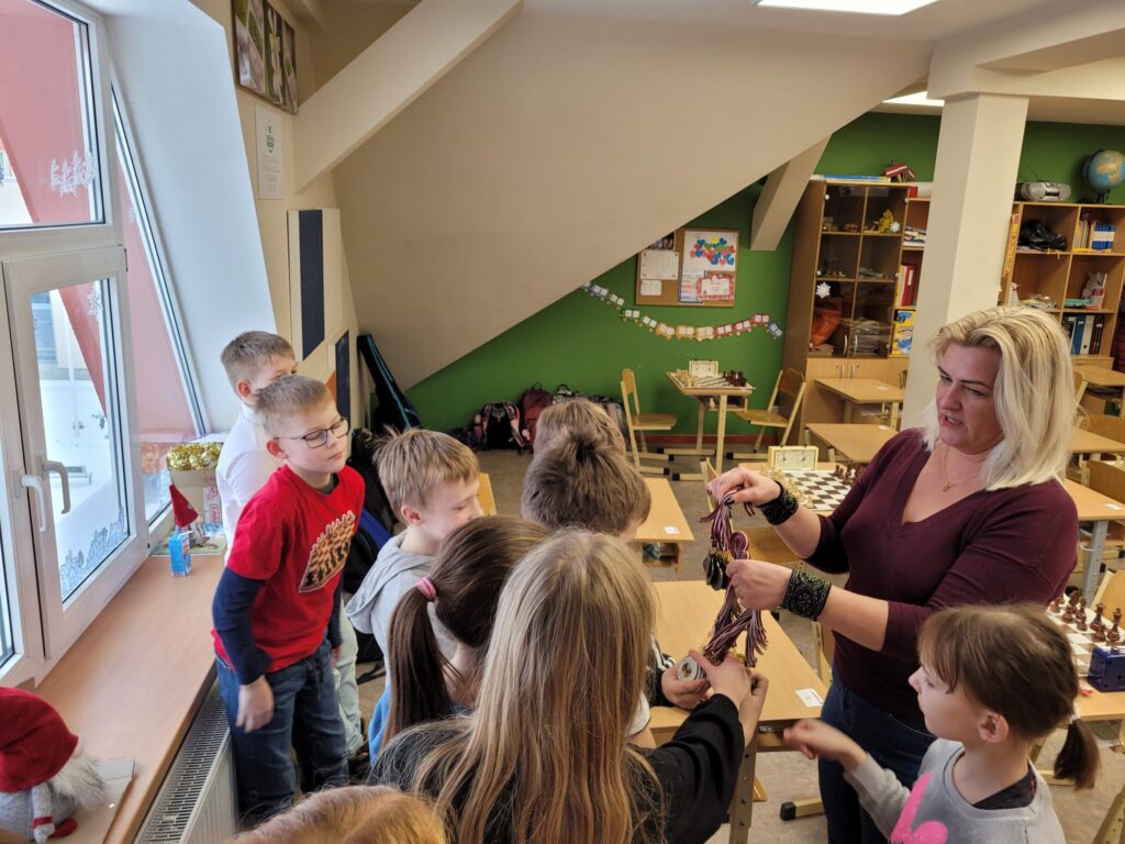 Skolas čempionāta turnīrus atklāja direktore Laila Roga un vietniece Linda Astrauska, kas katram turnīra šahistam dāvāja dalībnieka kartīti, kurā tiks ierakstītas gan uzvaras, gan zaudējumi un neizšķirti.