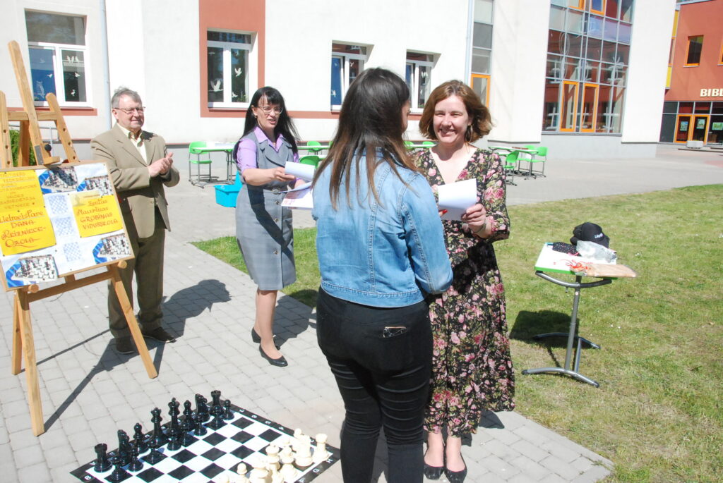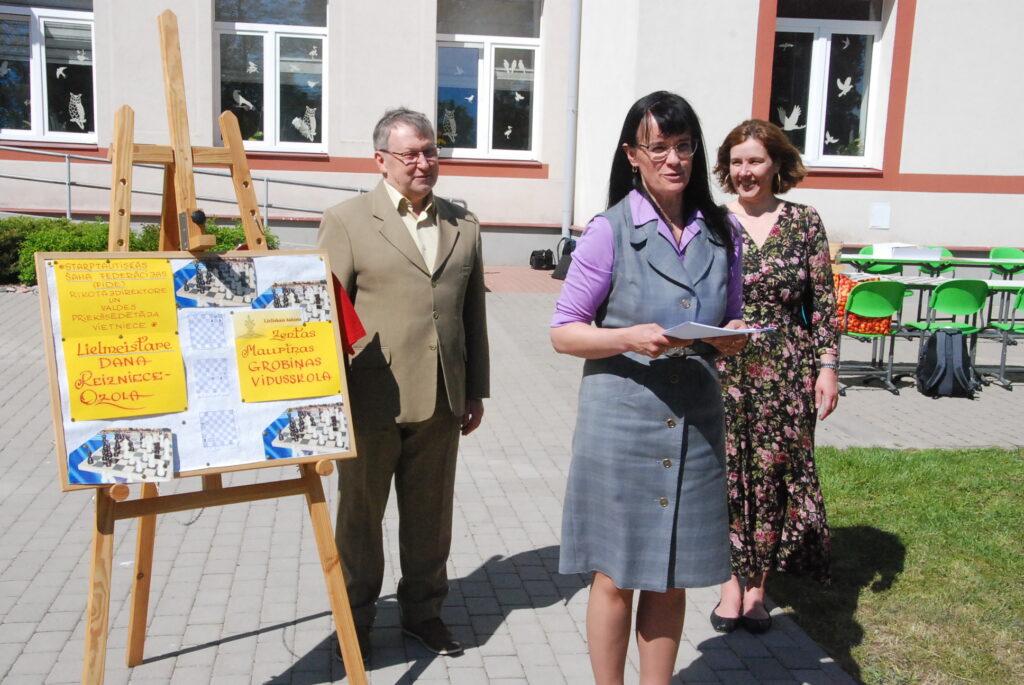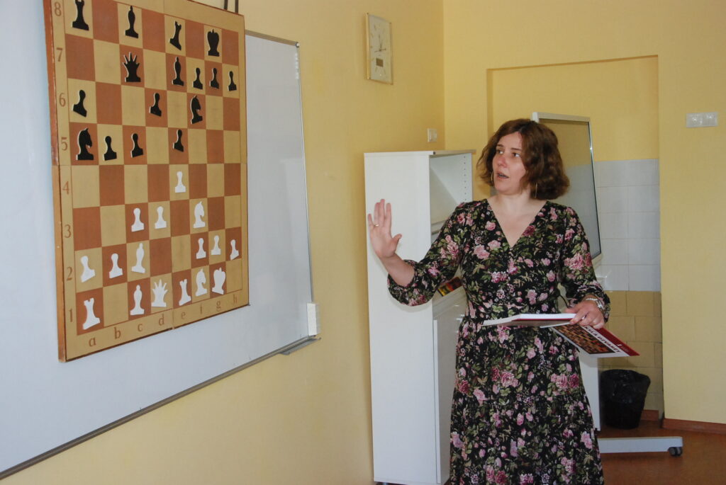 Lielmeistare D. Reizniece-Ozola sniedza arī ļoti interesantu meistarklasi un dāvāja šaha grāmatas.