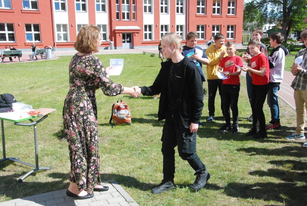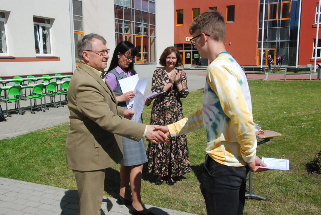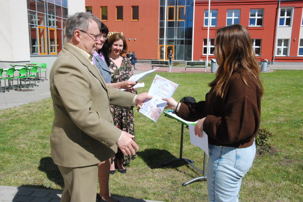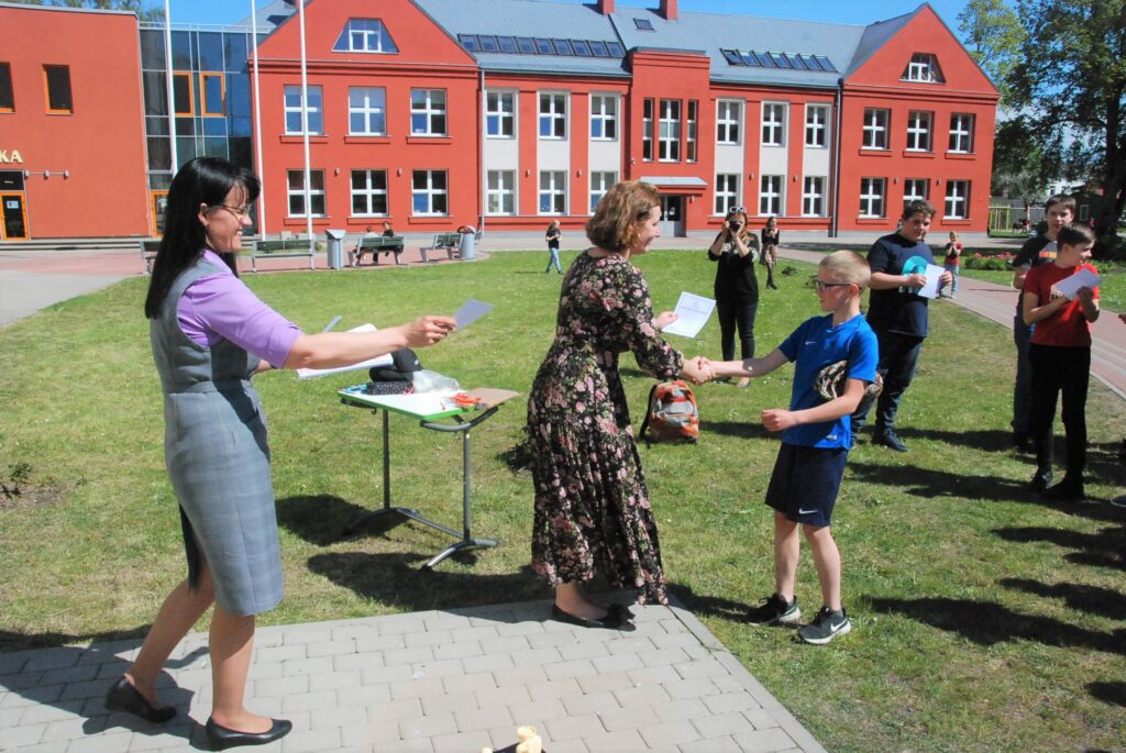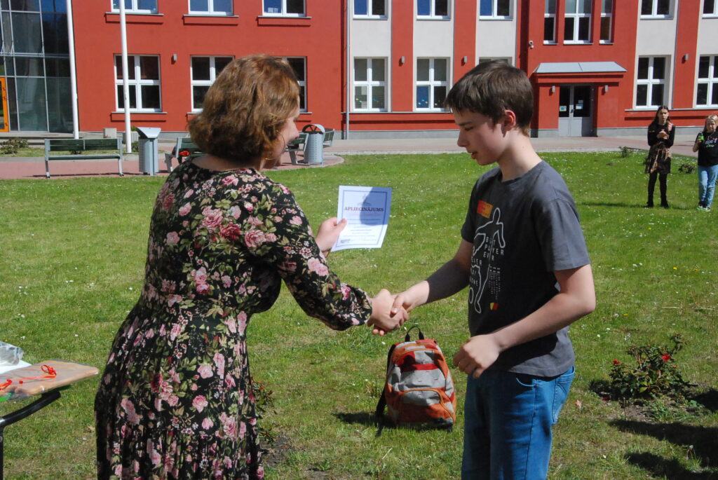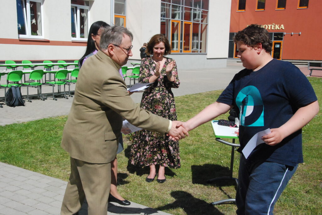 Pēc simultānspēles Dienvidkurzemes novada domes priekšsēdētājs Aivars Priedols šahistiem pasniedza Diplomus par sasniegumiem Latvijas skolu šaha olimpiādē.
