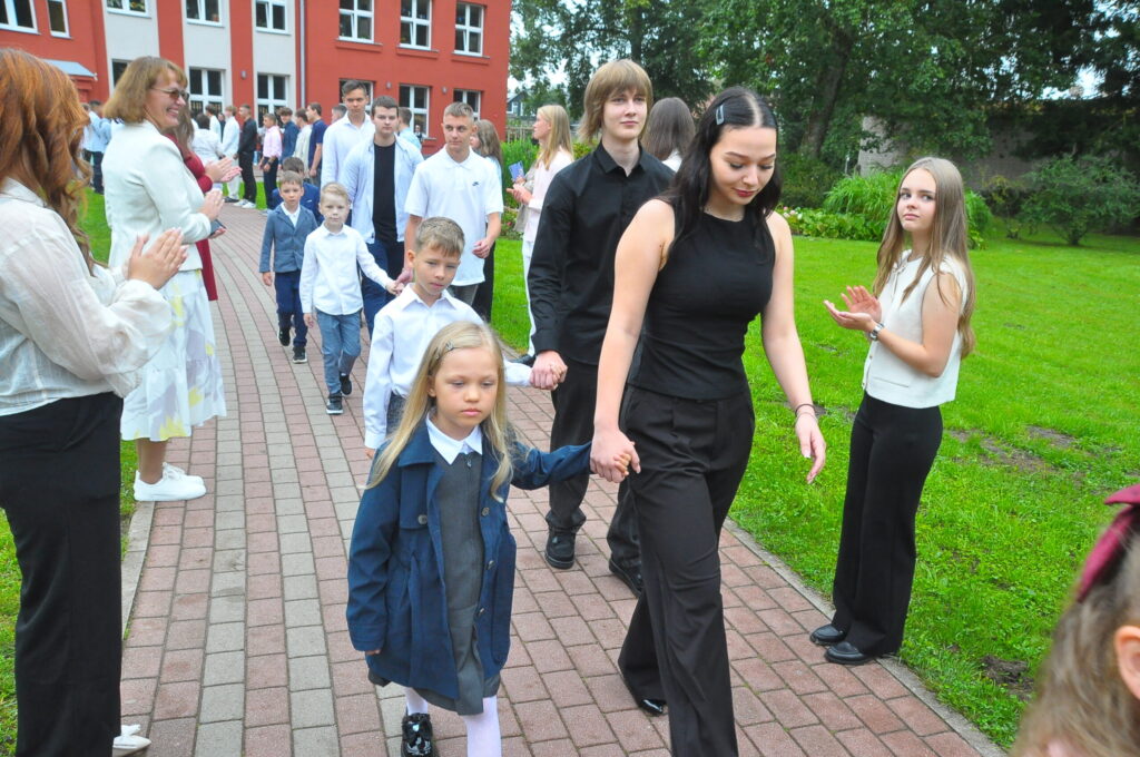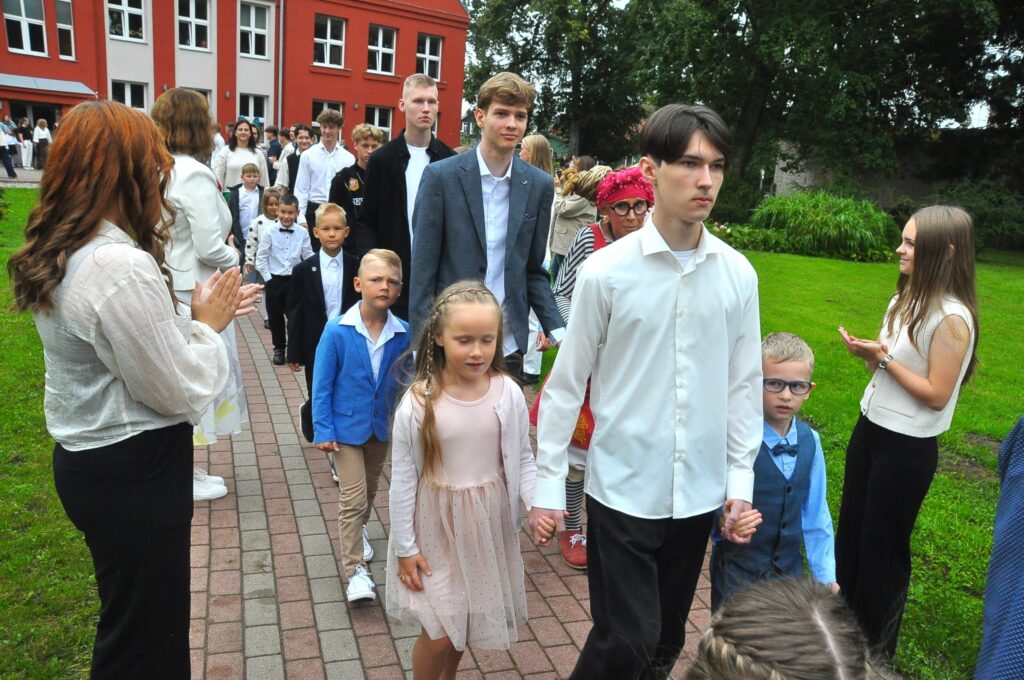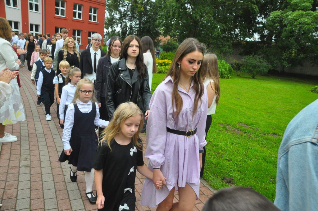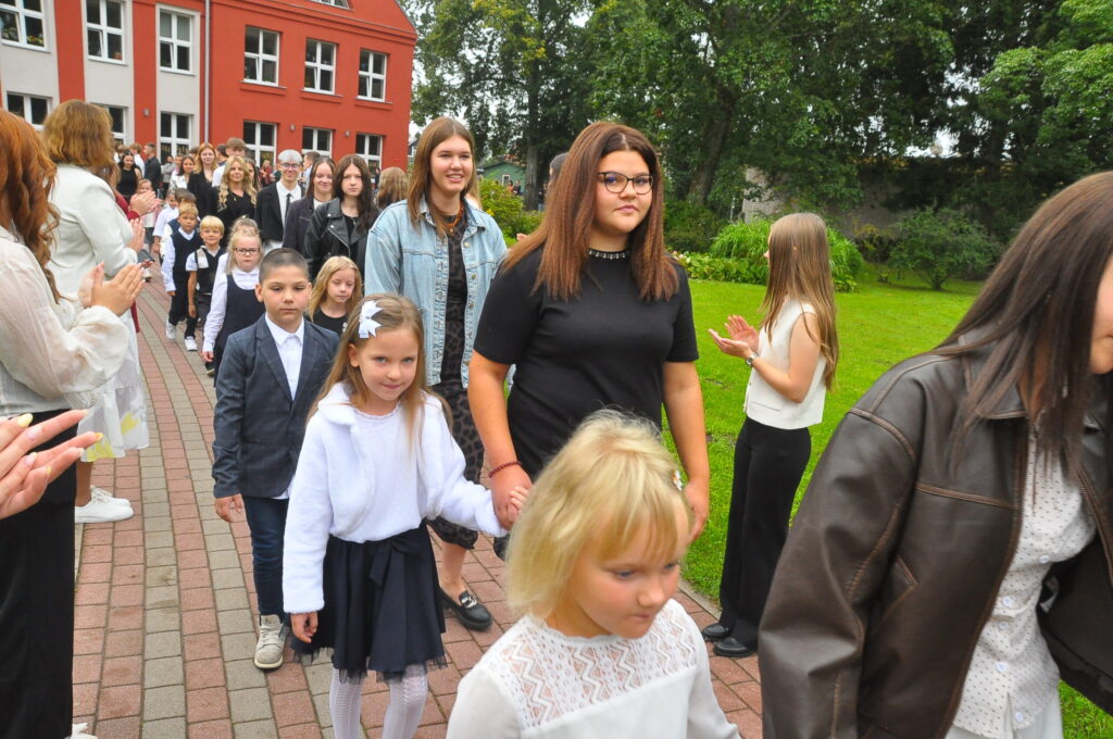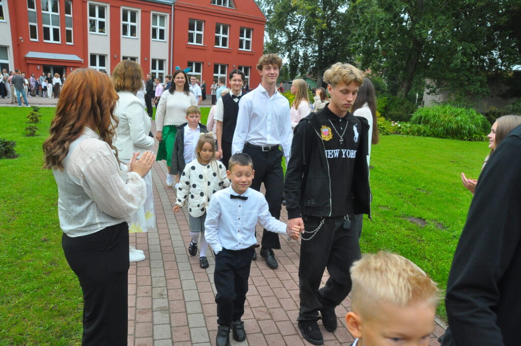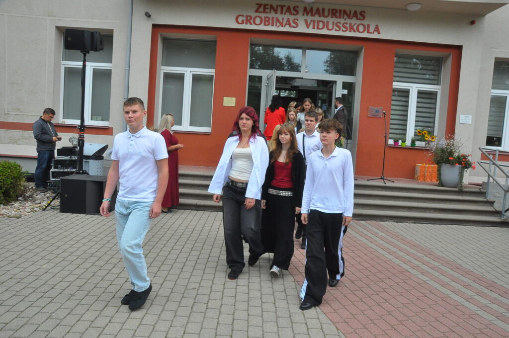Pirmdien, 1. septembrī, pagalmā pie Zentas Mauriņas Grobiņas vidusskolas notika 1. septembra svinīgais pasākums, kurā pulcējās skolēni, skolotāji un vecāki.