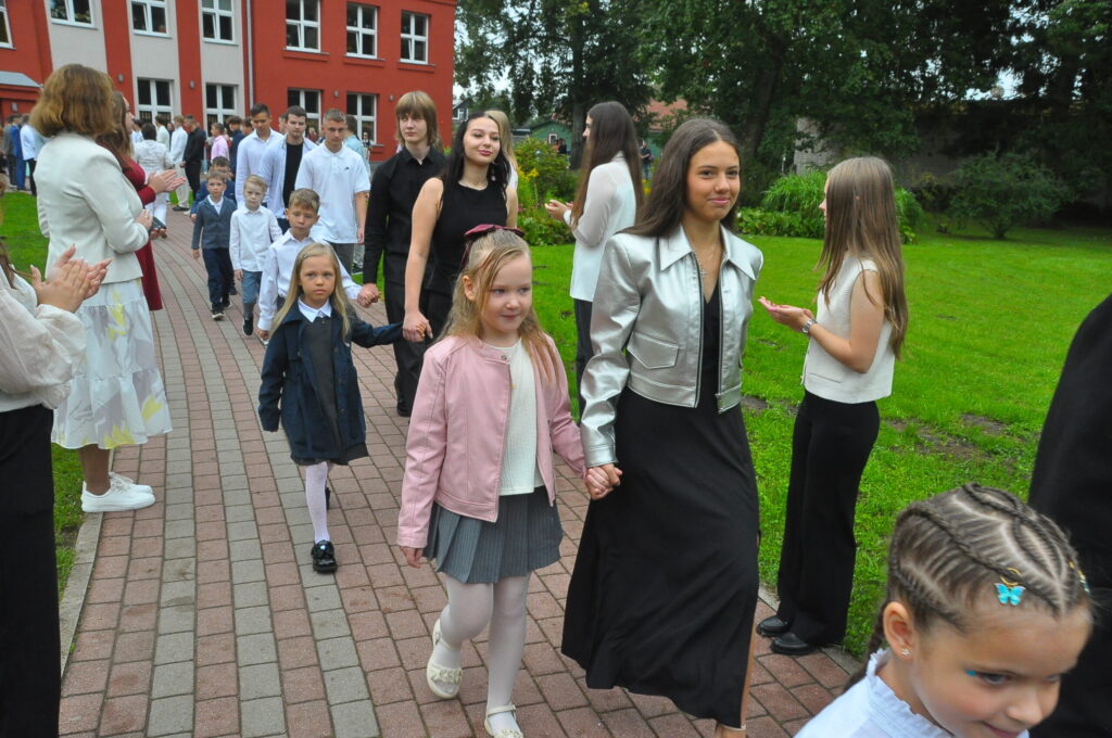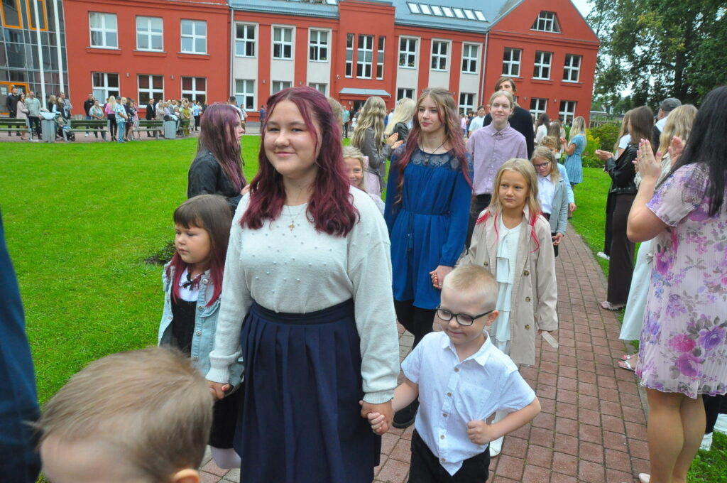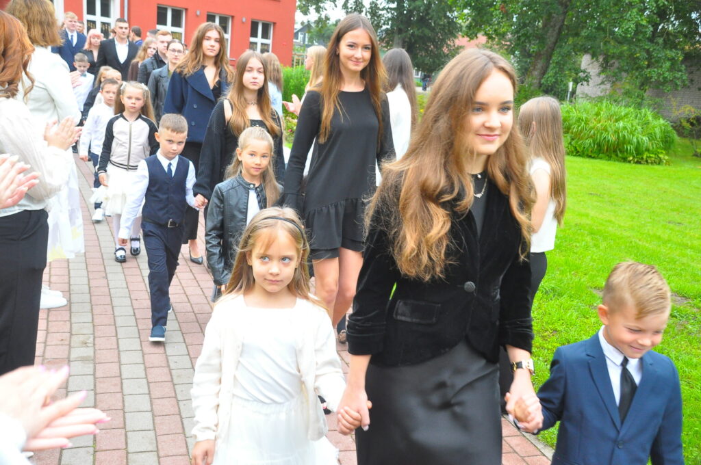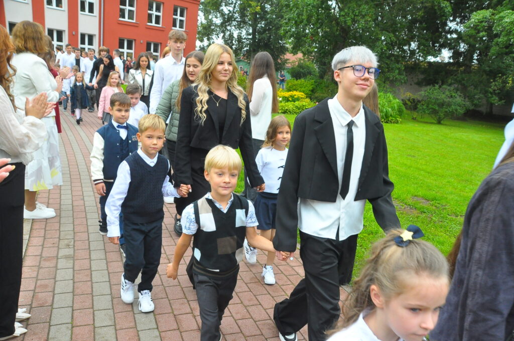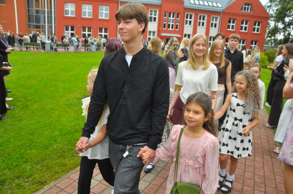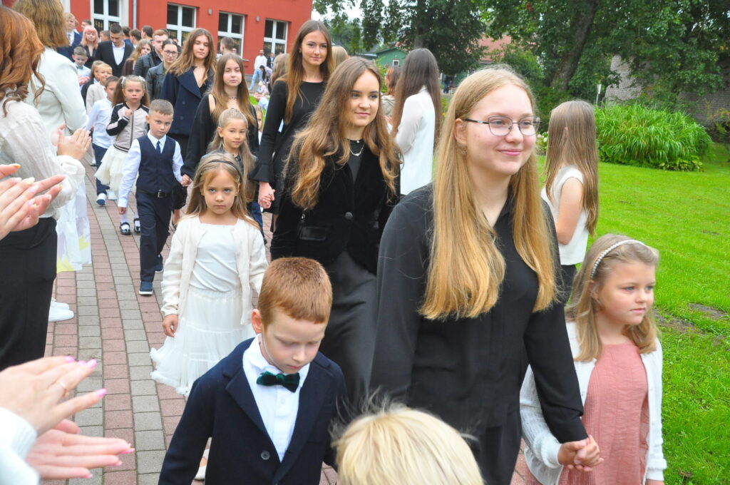 Pirmdien, 1. septembrī, pagalmā pie Zentas Mauriņas Grobiņas vidusskolas notika 1. septembra svinīgais pasākums, kurā pulcējās skolēni, skolotāji un vecāki.