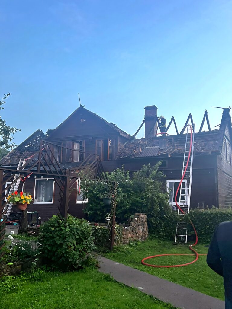 “Kaimiņi stāstīja, ka no peldētavas puses nākusi zibens bumba. Viņi redzēja, kā tā trāpīja mūsu mājas jumta antenā. Mēs paši neredzējām. Kaimiņi mums zvanīja un teica, ka mūsu māja deg. Mēs tobrīd bijām iekšā, mājas otrajā galā. Televizors mums izsprāga. Sākumā bija dūmi, pēc tam parādījās liesmas,” portālam “ReKurZeme” stāsta mājas saimniece Daiva Dzene. Mājā viņa dzīvojusi kopā ar savu vīru Andri Ešenvaldu.