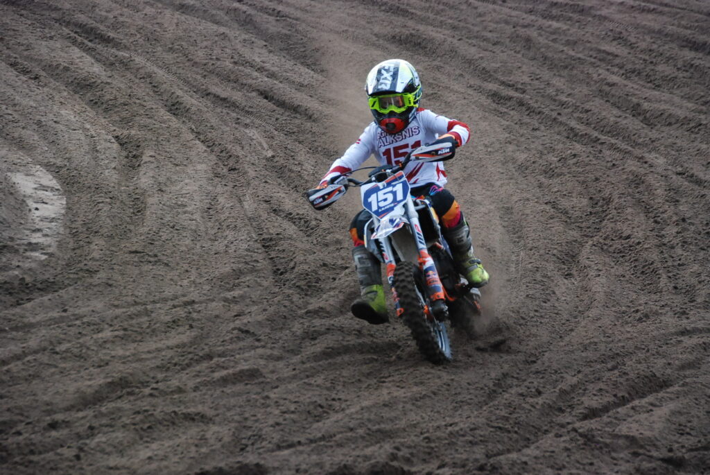 MX65 klases braucienam Liepājā gatavojas Grobiņas jaunais motosportists Agnis Alksnis. Foto – Uldis Dobelis