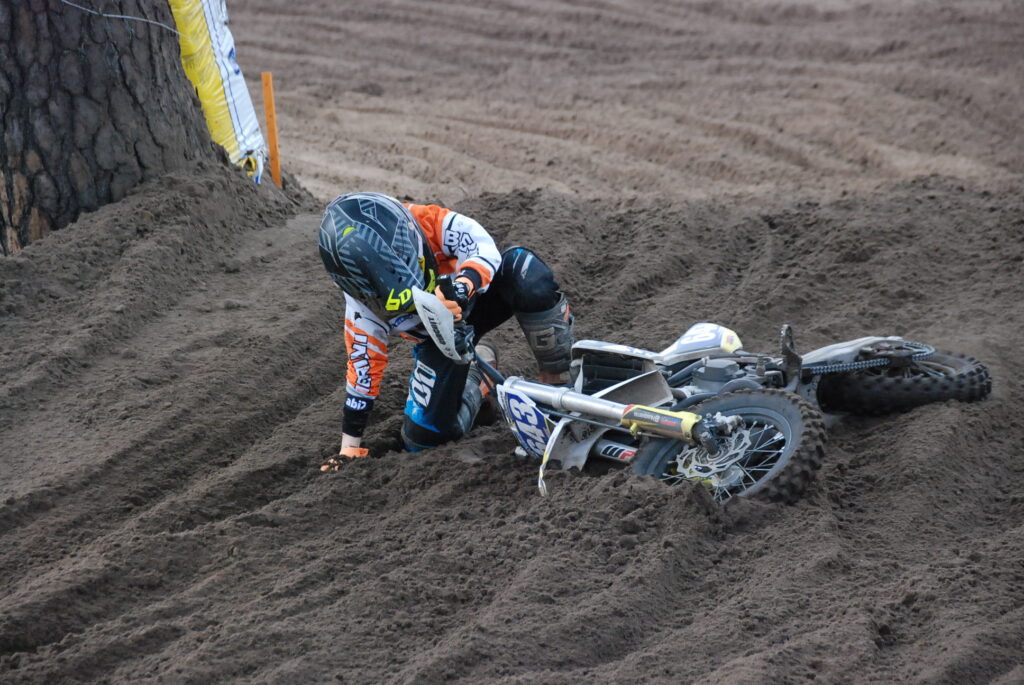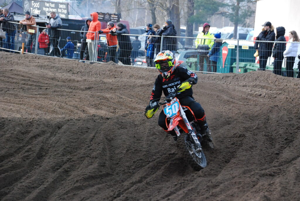 K. Kalējs MX1 klasē ierindojās devītajā vietā. “Laumas trase bija ļoti laba, bet man nogurdinoša. Pieguru, bet kopumā labi. Ātrums bija labs, varēju cīnīties, bet pirmās sacensības un vēl spēks nebija, mazliet uztraukums,” savu startu komentē K. Kalējs.