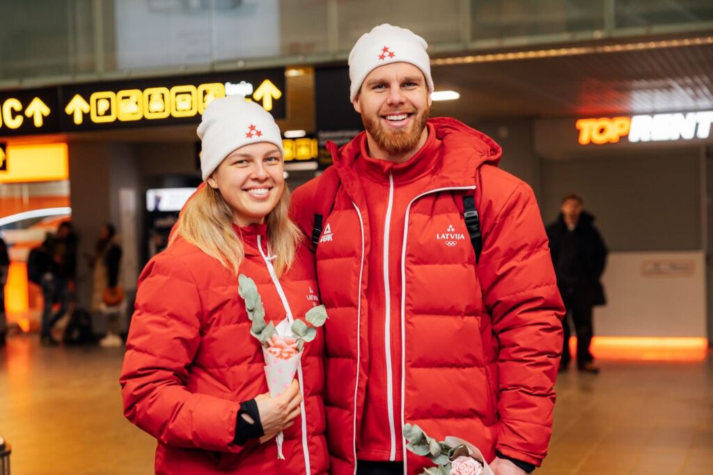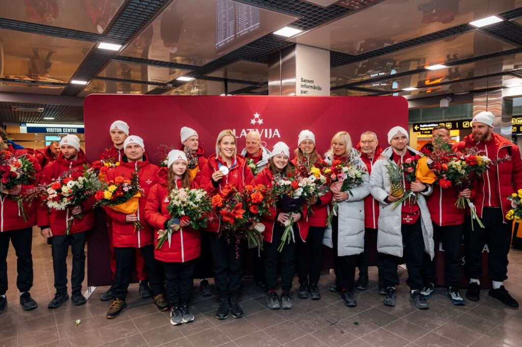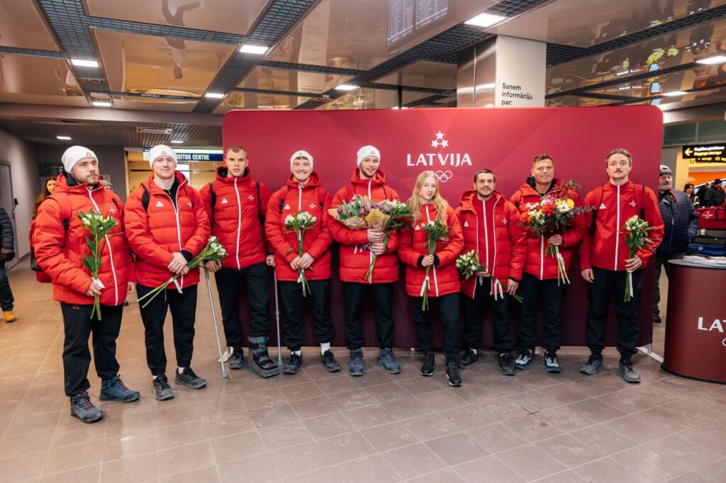 Olimpisko spēļu dalībnieki Rīgas lidostā ieradās vakarā un pēc nelielas sagaidīšanas ceremonijas muzikālā pavadījumā ar īpaši noformētām automašīnām Valsts policijas ekipāžu pavadībā devās uz Siguldas dzelzceļa staciju, vēsta LETA.