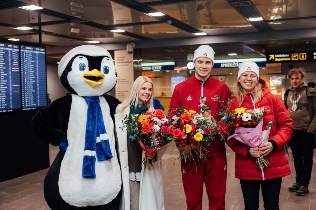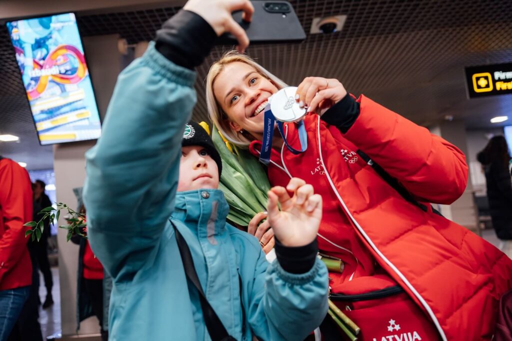 Siguldas dzelzceļa stacijas laukumā notika oficiālā sportistu sagaidīšana, īpaši godinot Botu viņas dzimtajā pilsētā.