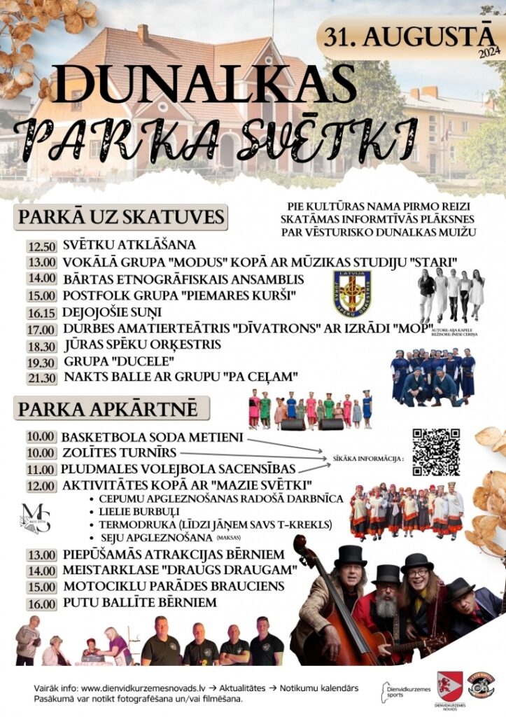 Sestdien, 31. augustā, visas dienas garumā ar plašu svētku programmu aicina svinēt Dunalkas parka svētkus.