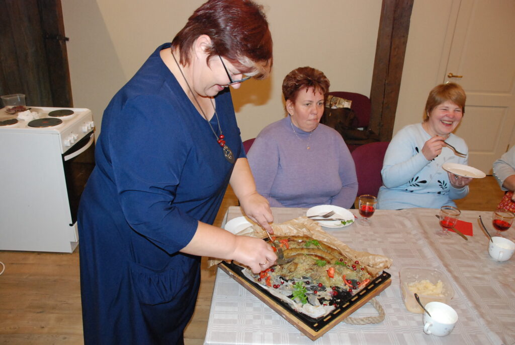 Dunalkā ēdienu meistarklases ir iecienītas. Šoruden Ražas svētkos tapa kartupeļu desa. Foto – Uldis Dobelis