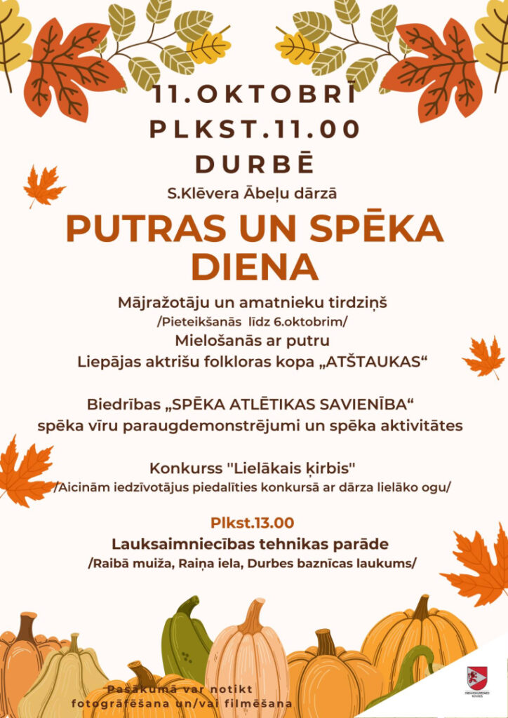 “Paķer līdzi uz svētkiem savu dārza dižāko ķirbi un parādi to citiem – iespējams, tieši tavējais kļūs par svētku lepnumu! Un ēdīsim putru, lai būtu spēcīgi un veselīgi! Tiekamies Durbē!” uz svētkiem aicina Durbes pilsētas kultūras pasākumu organizatore Daira Veilande.