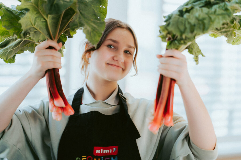 “Arī mūsu laukos kuplo rabarberi – man ļoti patīk, kā tie izskatās. Mana mazā māsa rabarberus ēd ar brūno cukuru. Viņai šī kombinācija – salds kopā ar ko skābu – ļoti garšo,” teic “Rimi Bērniem” eksperte Lība Smildziņa.