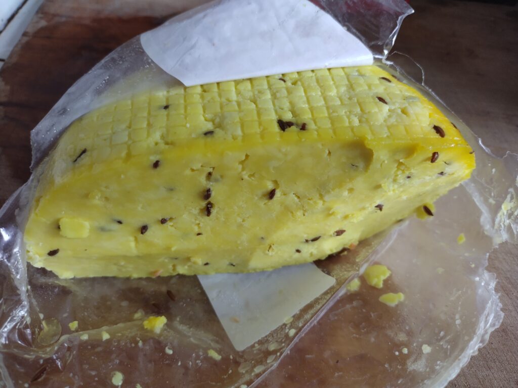 1. Pārpalikušo Jāņu sieru sagriez stienīšos – aptuveni 5x2 cm garumā.