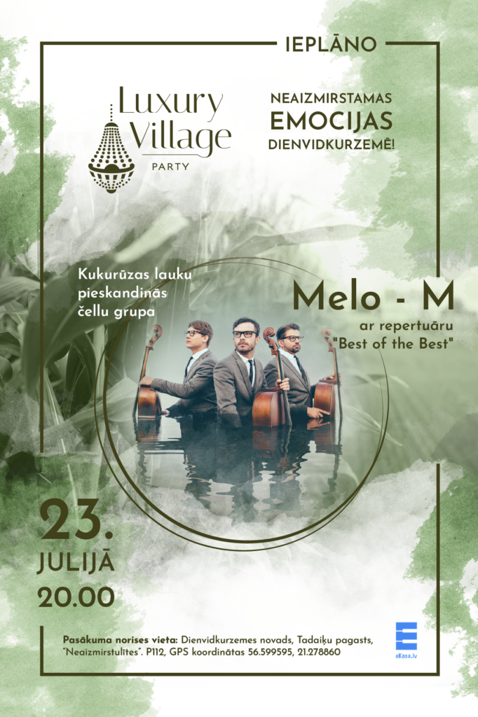 Lai popularizētu kvalitatīvu, videi draudzīgu un ilgtspējīgu dzīvesveidu savienojumā ar lauku romantiku un šarmu, Dienvidkurzemē ir radīts jauns muzikālu vakaru koncepts “Luxury Village party”. Koncerti dažādām gaumēm norisināsies unikālā vidē – iekoptā kukurūzas laukā, lai ikviens apmeklētājs šajos vakaros spētu baudīt kontrastus un pretmetus. Pasākuma atmosfēra veidota tā, lai ērti būtu visiem – gan tiem, kas sēdēs no svaigi pļauta siena gatavotos krēslos, gan tiem, kas atlaidīsies elegantos un mīkstos dīvānos.