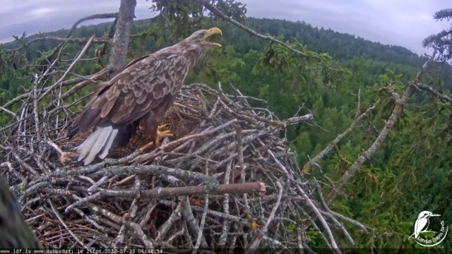 Jūras ērglis Voldis sargā savu ligzdu 23.07.2022. Foto avots: Dabasdati.lv Forums