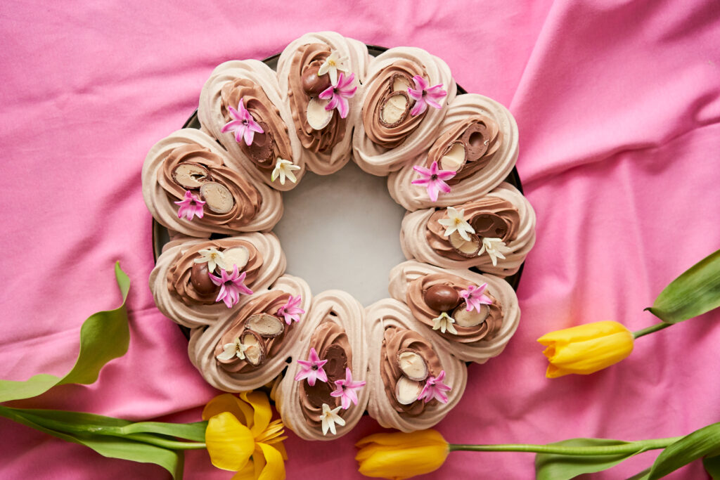 Lieldienu vainags no šokolādes bezē ligzdiņām