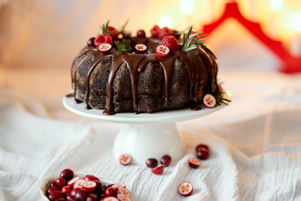 Šokolādes-piparkūku garšvielu kūka ar dzērvenēm un rozmarīnu
