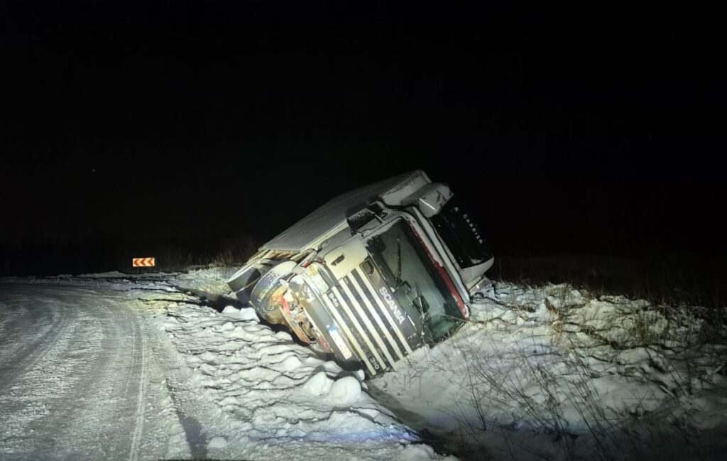 4. janvārī smagā automašīna grāvī uz Otaņķu ceļa netālu no Liepājas lidostas. Aculiecinieka foto