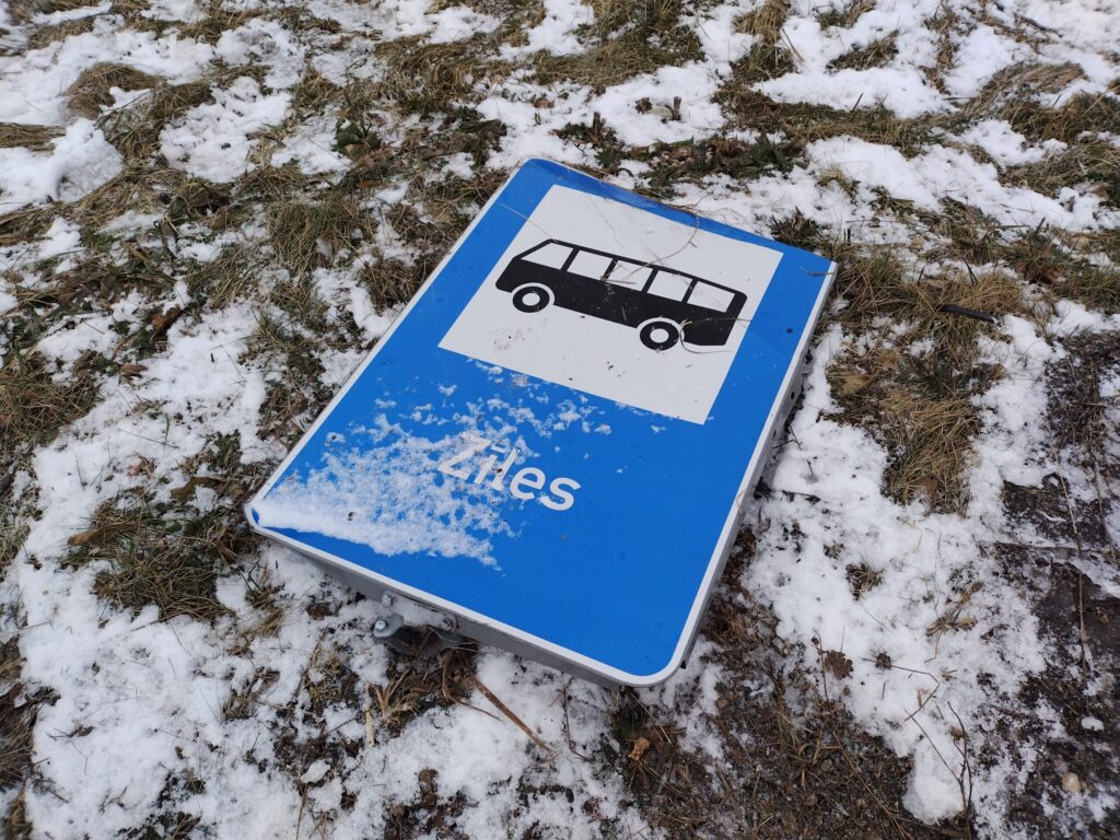 Valsts policijas sabiedrisko attiecību nodaļas vecākā speciāliste Madara Šeršņova portālam norādīja, ka policijai nav informācijas par bojātu ceļazīmi.