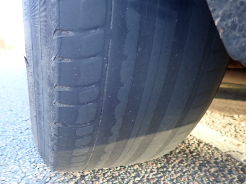 Pārbaudes laikā konstatēts, ka transportlīdzeklim “BMW” ir nepietiekams normatīvajos aktos noteiktais riepu protektora dziļums – abām aizmugurējās ass riepām konstatēts 0,00 mm, kas apdraud satiksmes drošību.